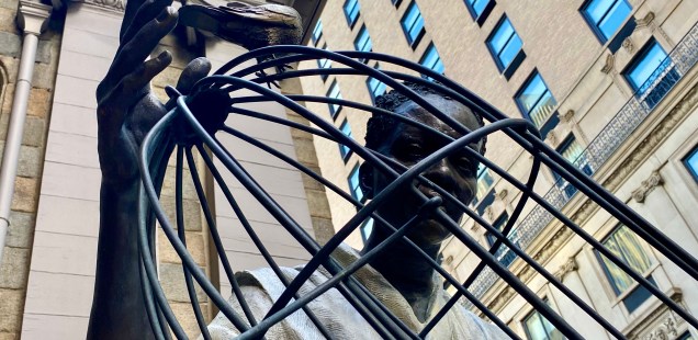 “Unbound” was unveiled outside King’s Chapel on Tremont Street in mid-September, but my first visit was late December. Today my goal is to share photos, links and quotes that lead you there, in person if possible. Soon I hope to learn enough to post a worthy sequel.