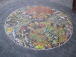 The mosaic survives frequent foot  and stroller traffic.