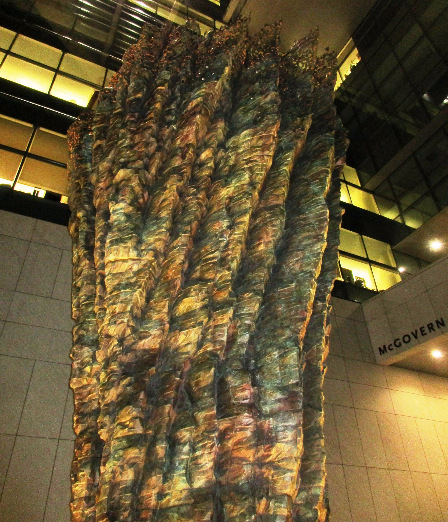 - The grid-like interlocking of beams gives an underlying visual structure to the curving surfaces, which themselves invite the touch with their rough, furrowed textures.