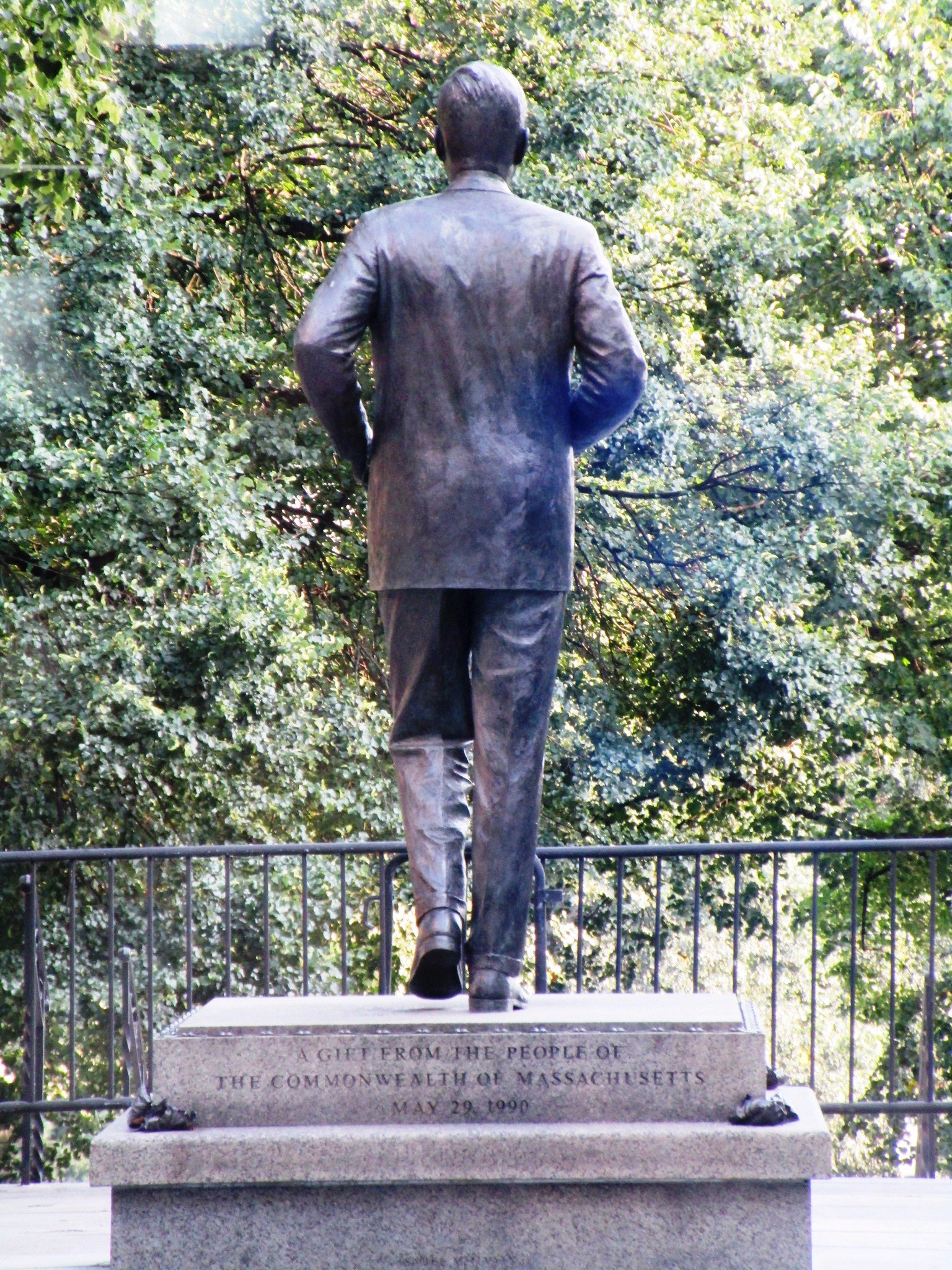 - This sculpture captures Kennedy’s youth and poise as he walks confidently out of the Massachusetts State House.