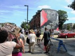 - “She and assistants Luis German Gomez Garcia-Herreros and Ryan Dias-Toppin painstakingly wheat pasted laser prints — at a scale of 36” wide and as long as 20’ long — to the wall through sweltering heat. “