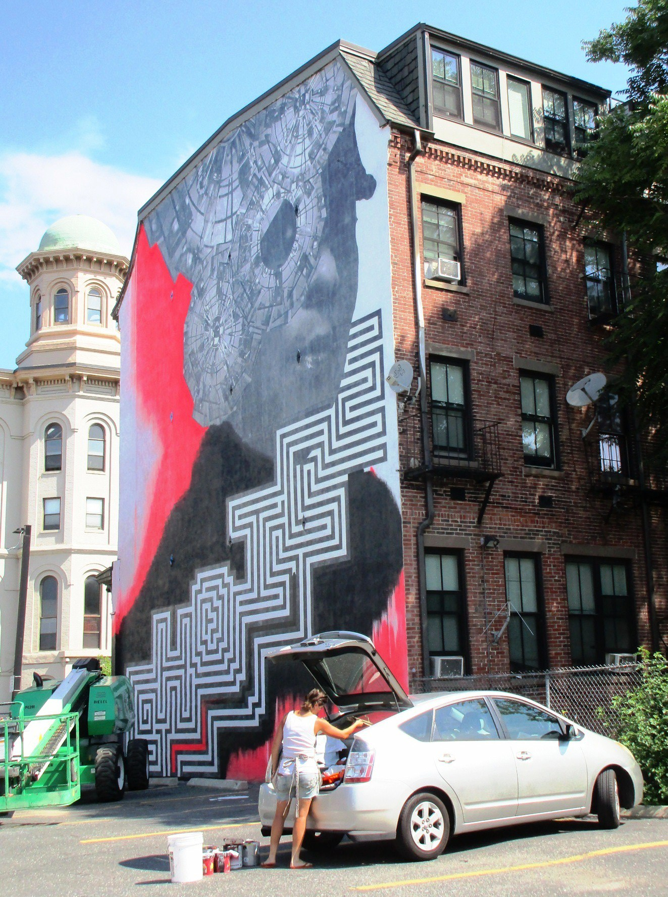 - “Located just west of the Massachusetts Avenue bridge, Patterned Behavior is the first mural commissioned by the Esplanade Association and will be visible from the walking path along the river as well as from Storrow Drive, Memorial Drive, and from the river.”