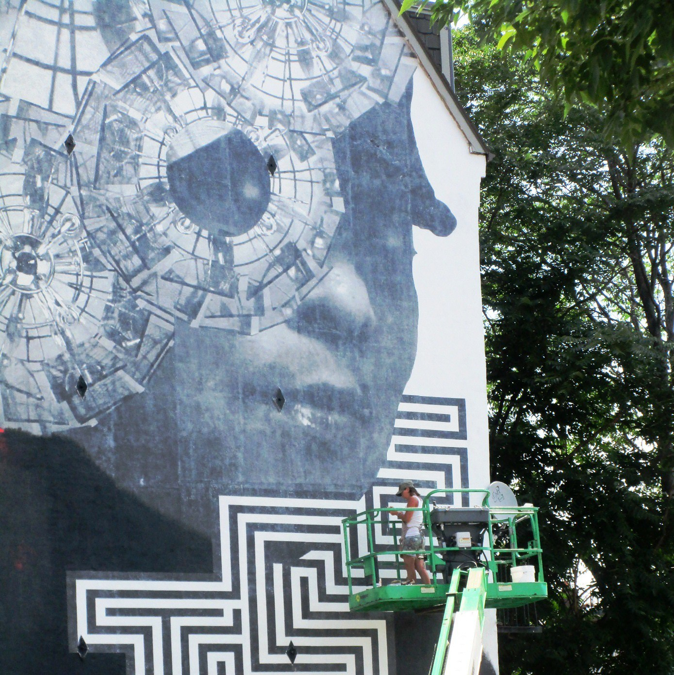 - “She and assistants Luis German Gomez Garcia-Herreros and Ryan Dias-Toppin painstakingly wheat pasted laser prints — at a scale of 36” wide and as long as 20’ long — to the wall through sweltering heat. “