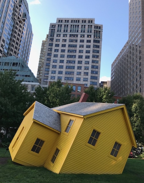 - The sculpture references two significant parts of New England history: the small house-like structure is a reminder of the thousands of displaced residents and demolished homes that resulted from the city’s elevated highway infrastructure project, and the larger house is inspired by the Pembroke Friends Meeting House, which is the oldest surviving Quaker meetinghouse in Massachusetts.