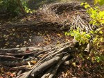 - “Current,” created by Provincetown artist Frank Vasello, creates a river of sticks moving down a hill near the Spy Pond Park playground.