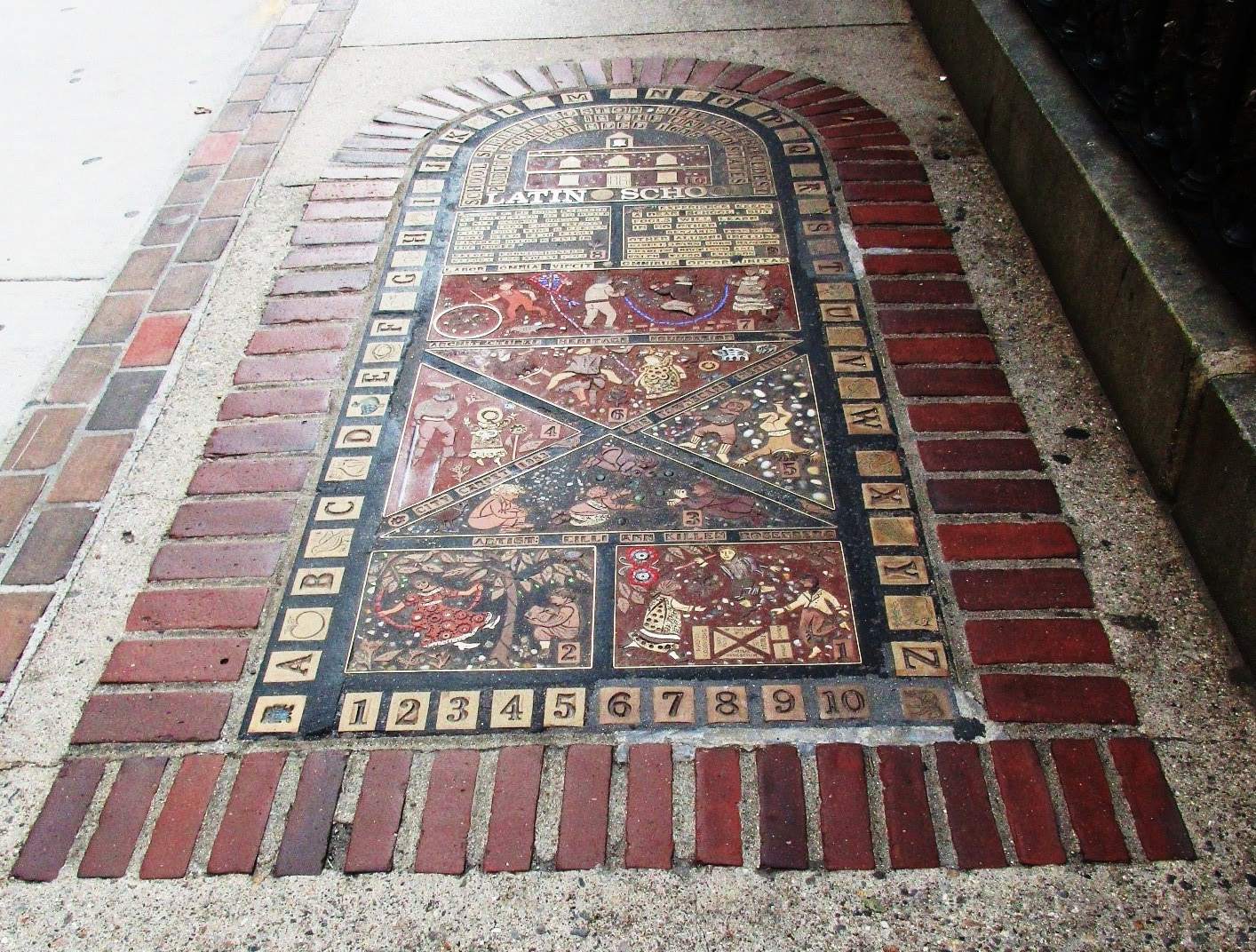 - “Shaped like a hopscotch grid, this mosaic marks the original site of the Boston Latin School, the first public school in the US.