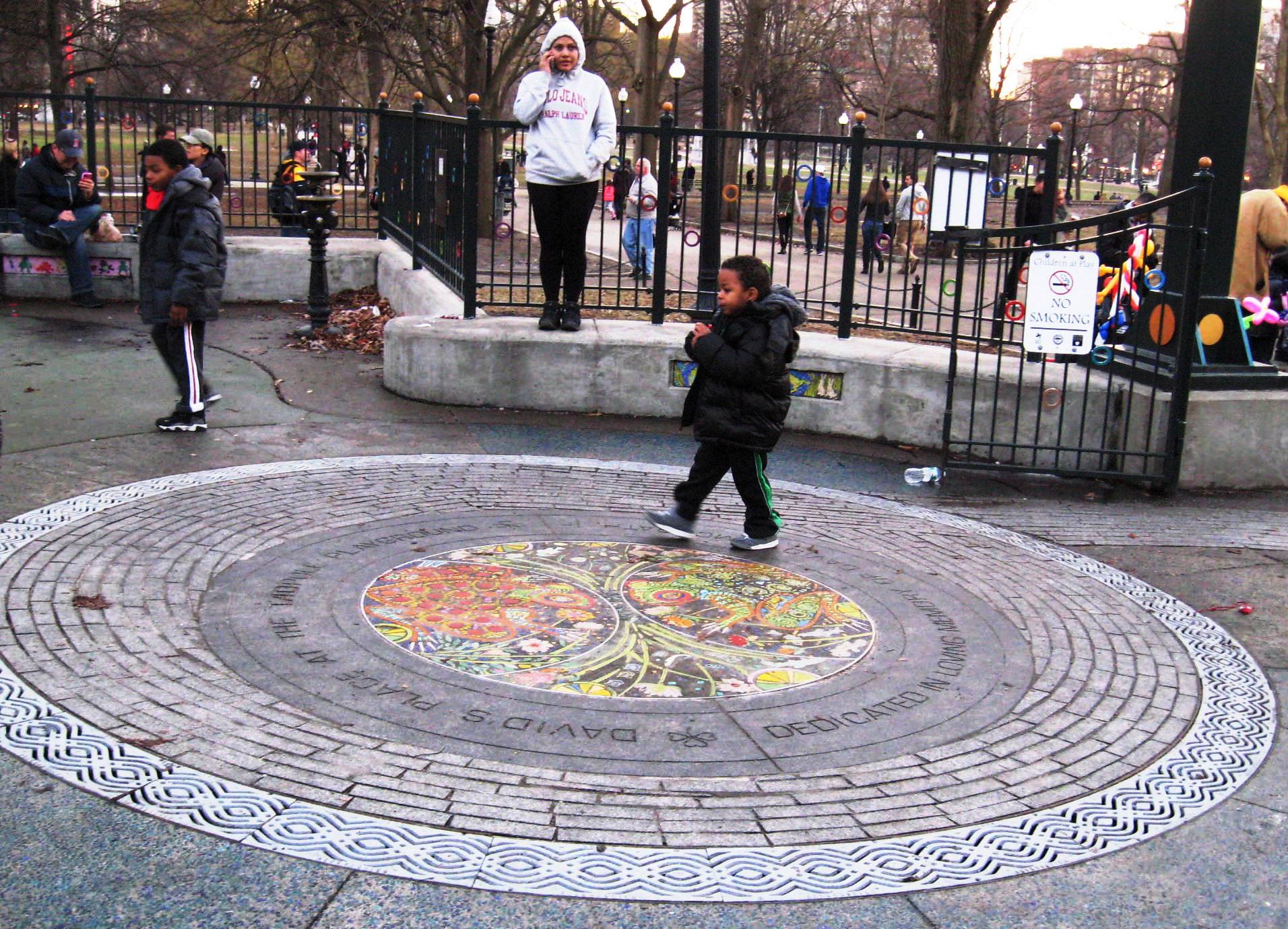 - “Shaped like a hopscotch grid, this mosaic marks the original site of the Boston Latin School, the first public school in the US.