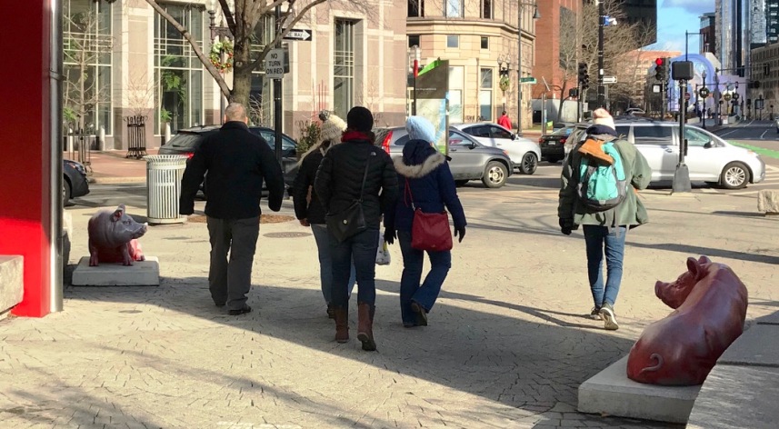 Very nice pictures! I like how the pigs seem to be observing the people walking past. In the other picture without the people, the pigs seem to sort of be looking at each other.