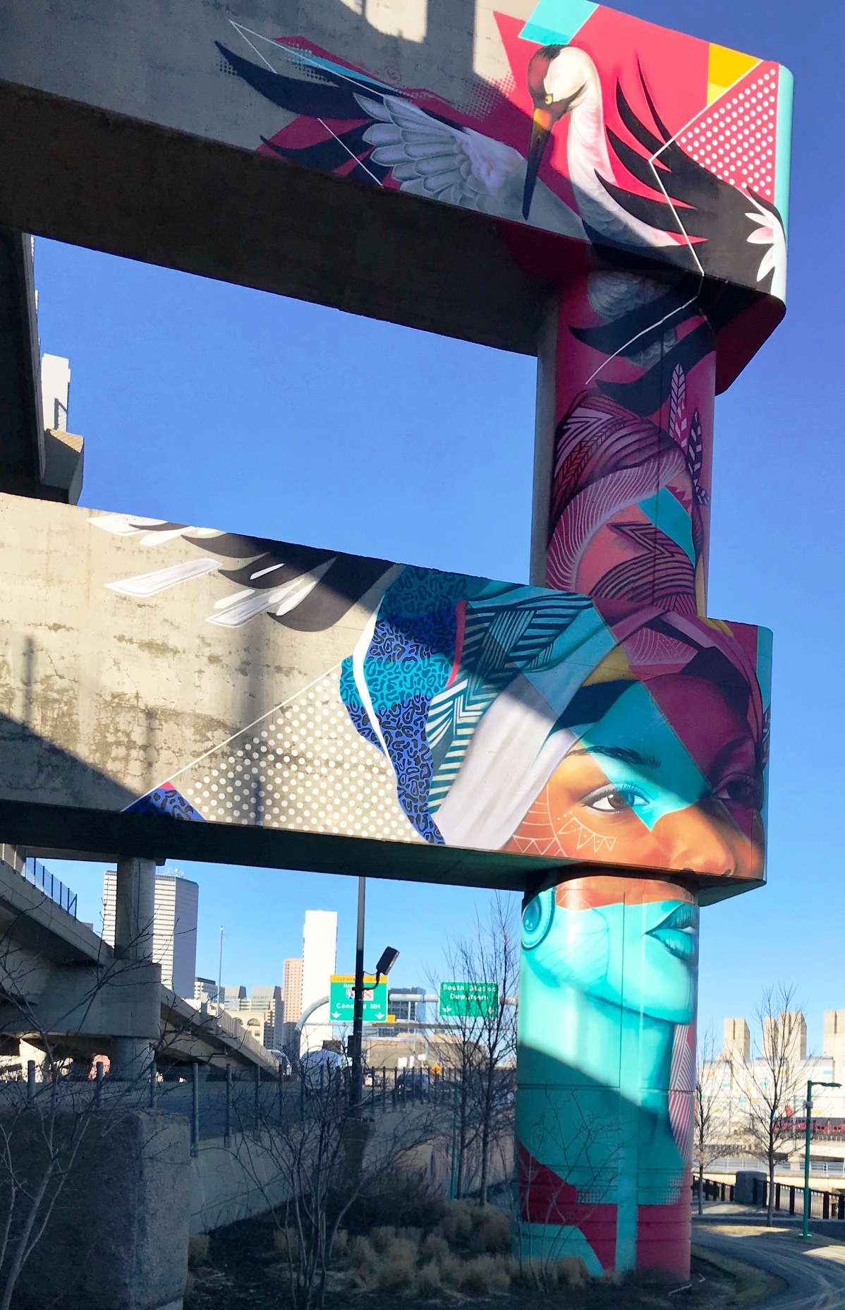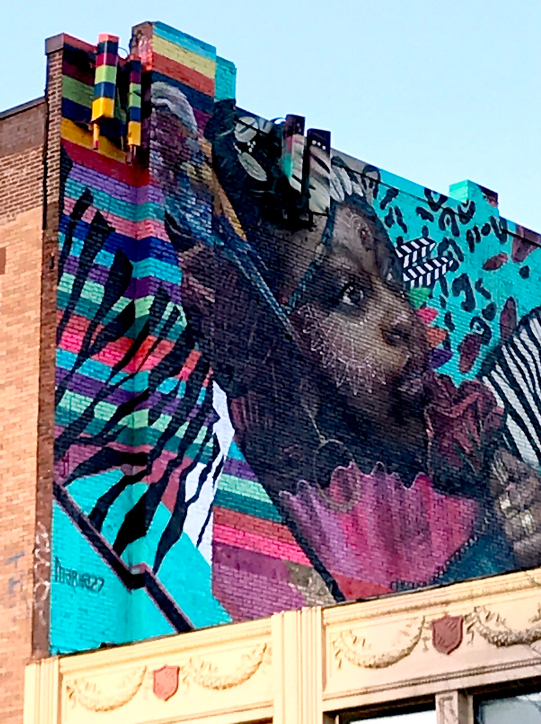 Both photos above show “NO WEAPON FORMED AGAINST THEE SHALL PROSPER | 2020,” collaboratively developed with other artists in Murals for the Movement installed for a few months outside the Museum of Fine Arts, Boston. Learn more about this from STREET THEORY.