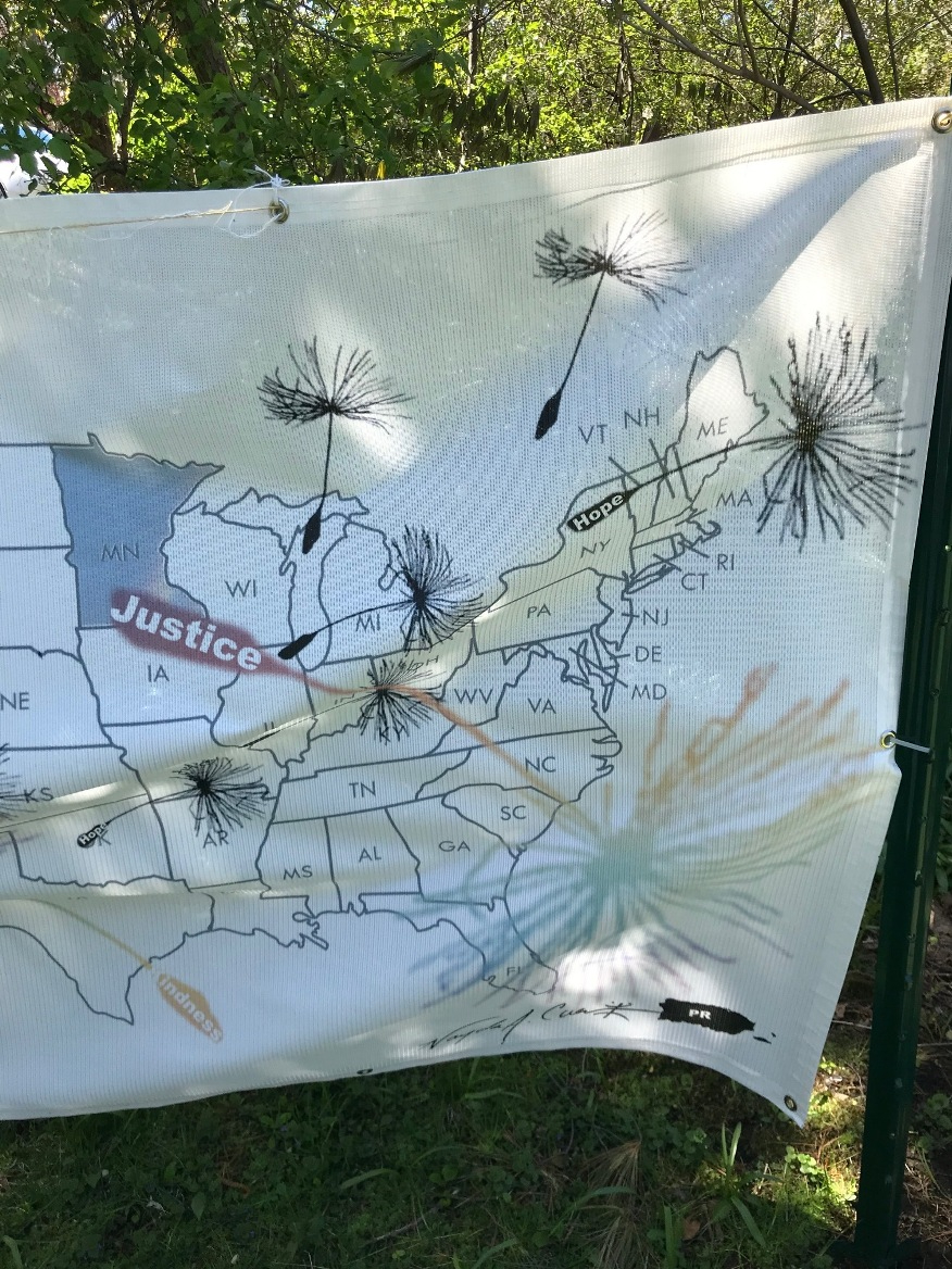 Nayda Cuevas | Wish for Change ( mesh banner with print) : artist’s website: https://www.naydacuevasart.com/