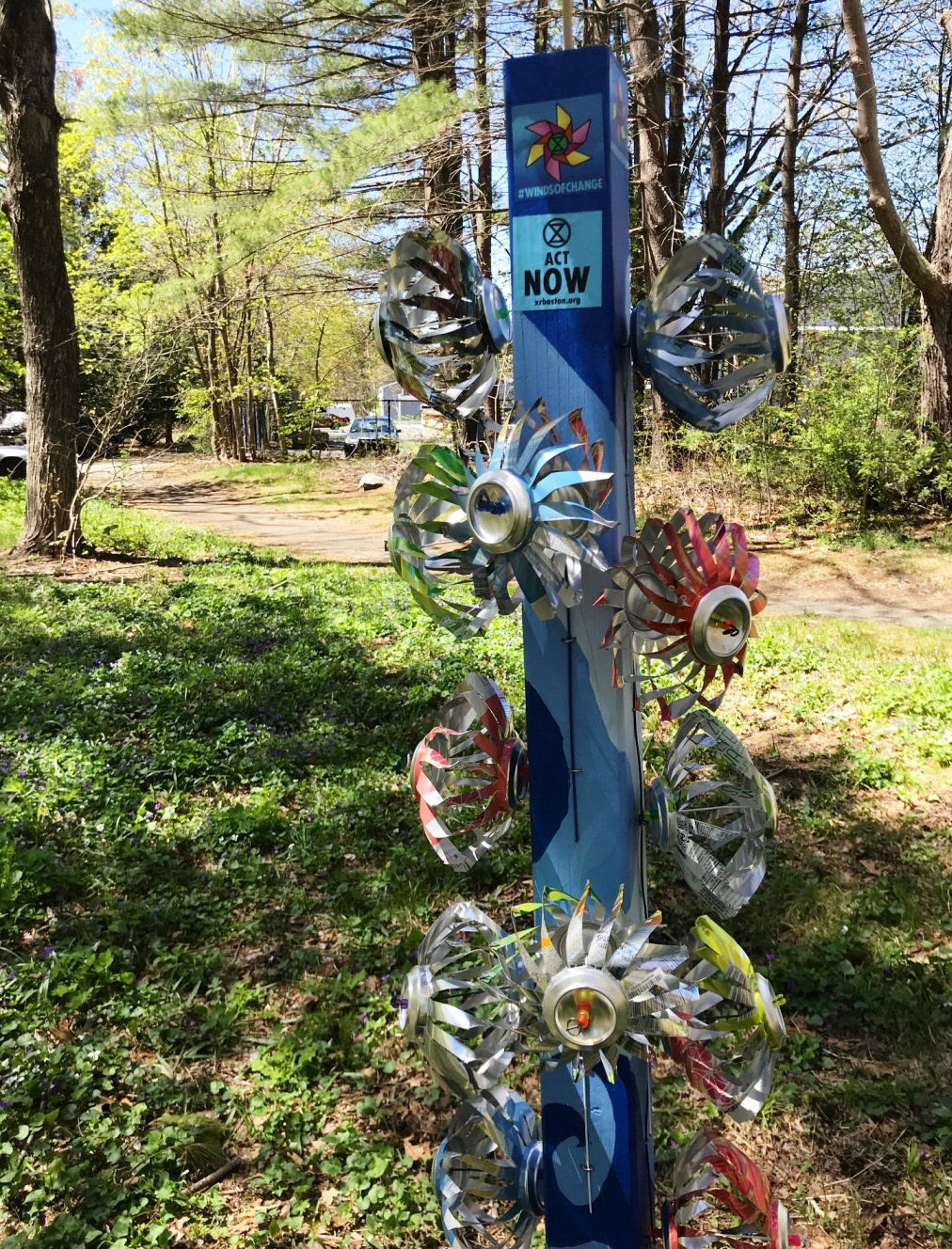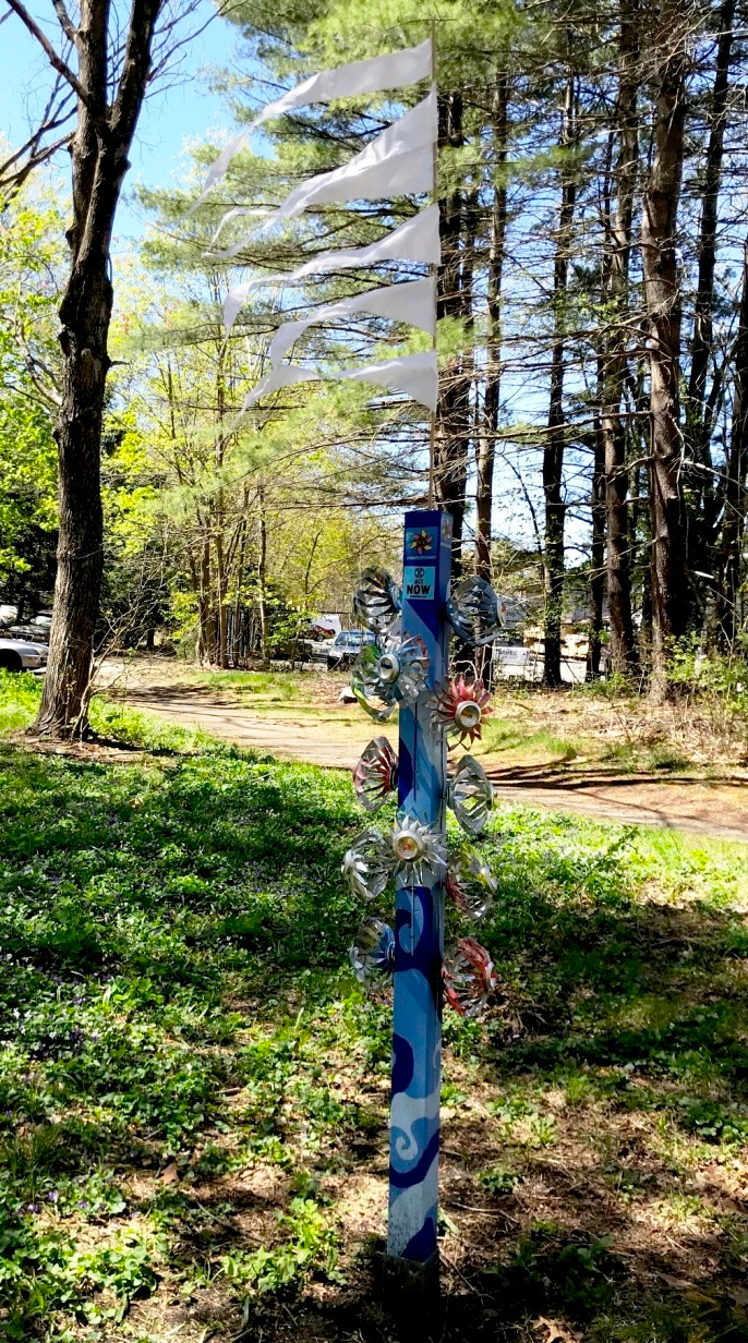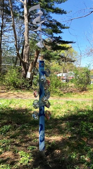Following the map for Umbrella Artfest Earth Day Art Walk has greatly added to my own awareness of Concord as well as the artists who created installations for the six stops listed. Because Art Walk has been up since April 25 with just a few weeks ahead, I’ll post quickly now. I want to spread the word so people who live close enough can go before it’s gone. Then I’ll hope to post a more comprehensive sequel later in May, including one key installation* I didn’t get to visit yet.