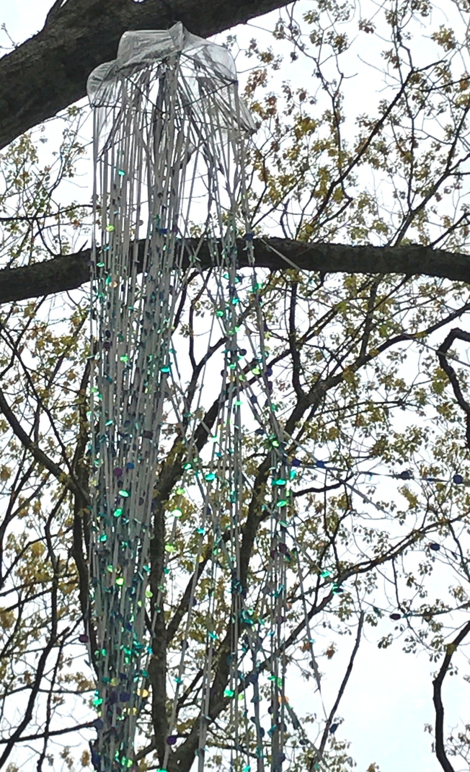 The two photos above are from installations I had hoped to include in my quick post about ARTFEST a week earlier. Both installations interact with varying light, air currents above, and beings below. In this promised swift sequel I try to offer photos, quotes, and links that will lead you closer to those experiences online or in person.