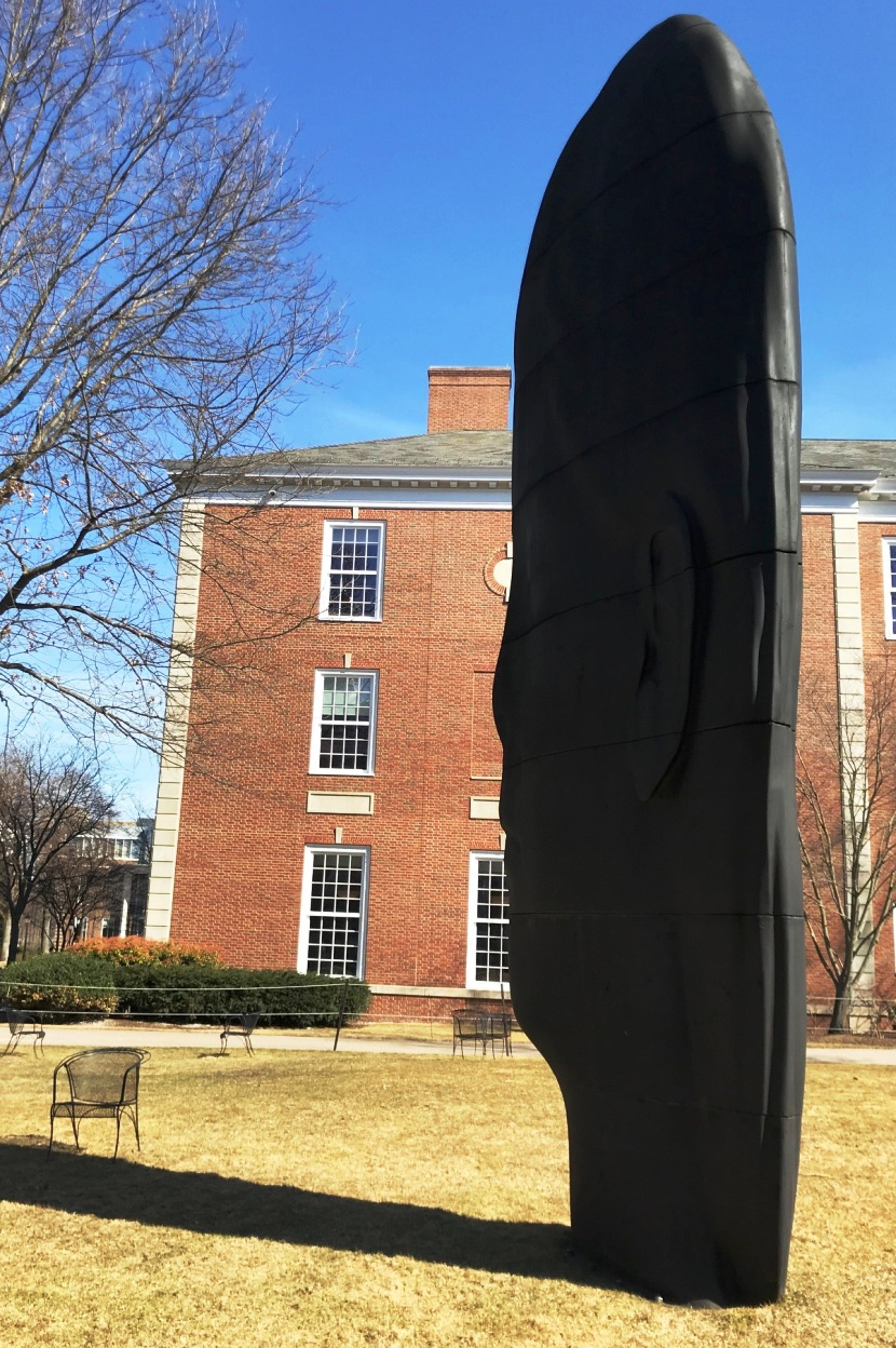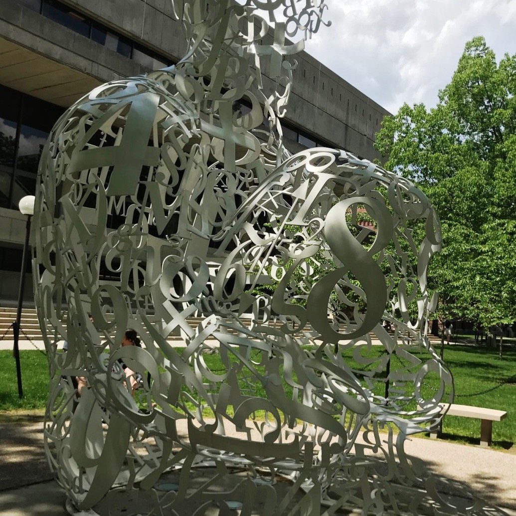 Visitors at deCordova this summer had noted that Humming was like a large head, also in sections, at the Harvard Business School. Their comments motivated me to track down Plensa’s sculpture Inés, where it had been installed four years ago, barely a mile from my home.