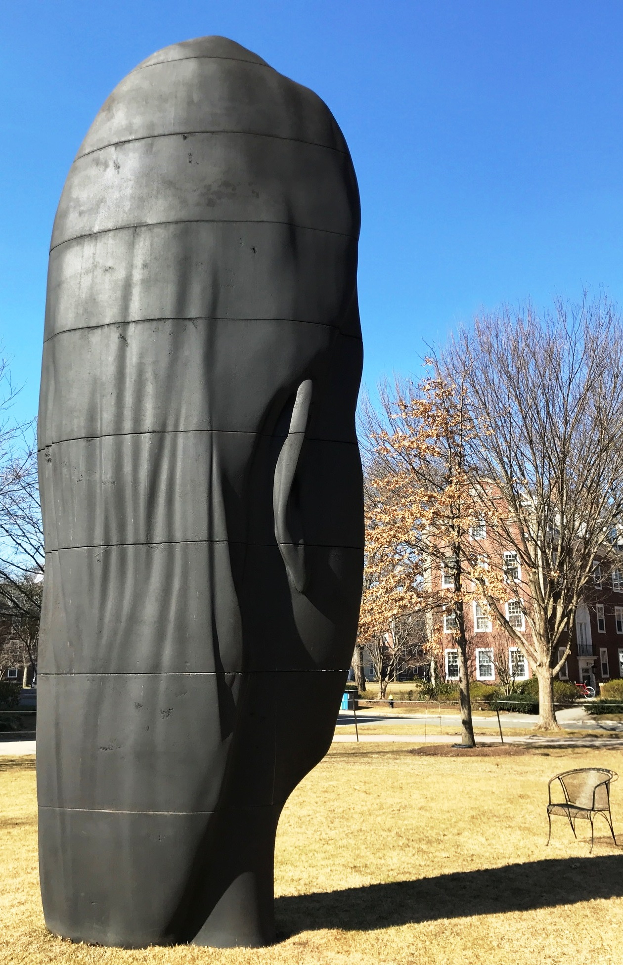 Jaume Plensa’s Humming came to deCordova Sculpture Park almost ten years ago, generating innumerable reminders of how powerful sculpture can be. As a guide at the park, I’ve seen many visitors engage with this tall translucent entrancing marble head. Humming is a reliable source of stories and questions about art processes. Also it has brought perspective to other art in the park, and it has led me to more sculpture by the same artist as well. An earlier post focused on Plensa’s Alchemist at MIT. This current post ties in with Plensa’s towering cast-iron Inés, 2013 at Harvard Business School and to an extended awareness of other places, i.e. NY, in the United States to see this artist’s work.