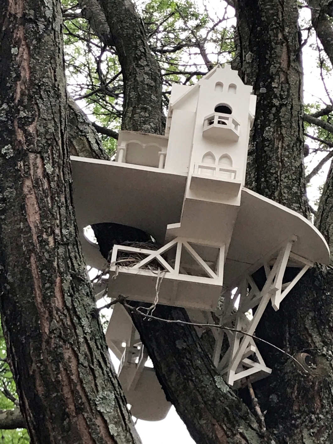 CF:” Initially, I was thinking of the birds. How amazing would it be to give them not just a simple birdhouse, but a space of this magnitude? What would it be like to create a place where birds can congregate together? I really hope that the birds notice and enjoy this home.” ( from Somerville Arts Council interview with Chris Frost just after Annex was installed)