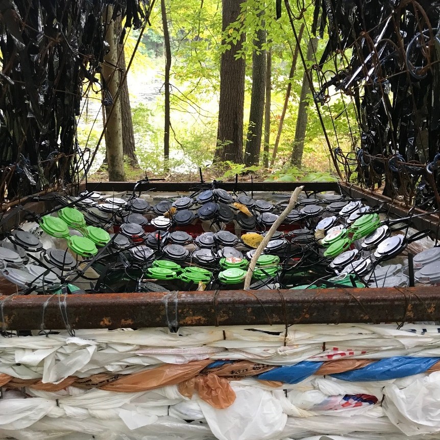 Rebecca McGee Tuck – Airing out the House (Steel, wire, crowdsourced plastic bags, VCR tape)