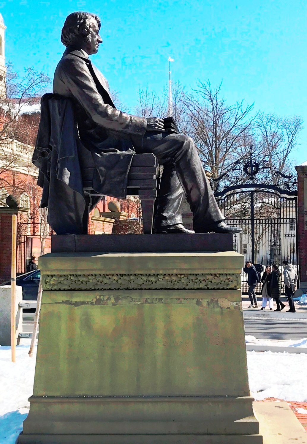 Sculptor Anne Whitney’s monument to abolitionist Charles Sumner, near an entrance to Harvard Yard, since 1900