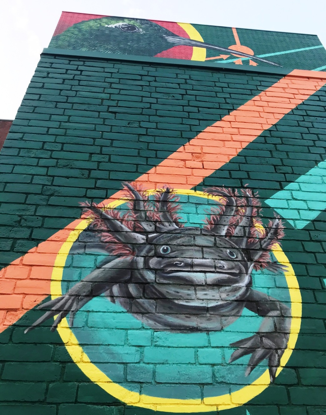 “My work is focused on the natural world, our place in it, and the conflicts and collaborations we find ourselves in everyday with nature. My bright, carefully researched murals often aim to disrupt deeply embedded beliefs about Aristotle’s hierarchy of nature. I render birds, animals, and plants to evoke a sense of awe and reverence for these beings. Although extinction and loss loom in the man-made Anthropocene era, I hope that my paintings call attention to the magnificent beauty that still exists in nature today.” ( quote from artist statement in About Sophy Tuttle.com )