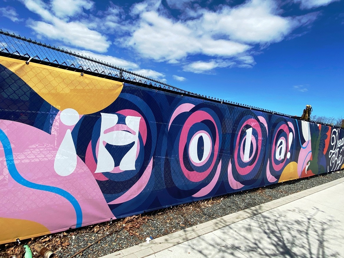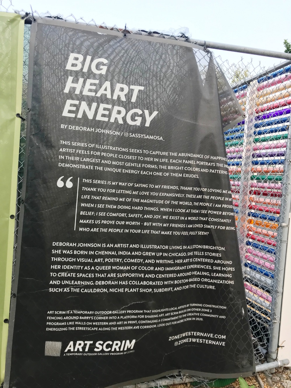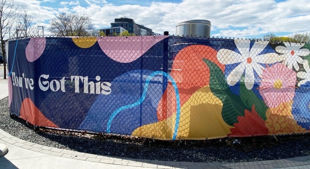 You’ve Got This is a series of varying bilingual phrases, colors and shapes that sets out to convey messages of positivity and encouragement. Artist, Yenny Hernández, is a Latinx award-winning Boston graphic designer who specializes in murals, lettering, and illustration.” (quote from ZONE 3: Art Scrim)