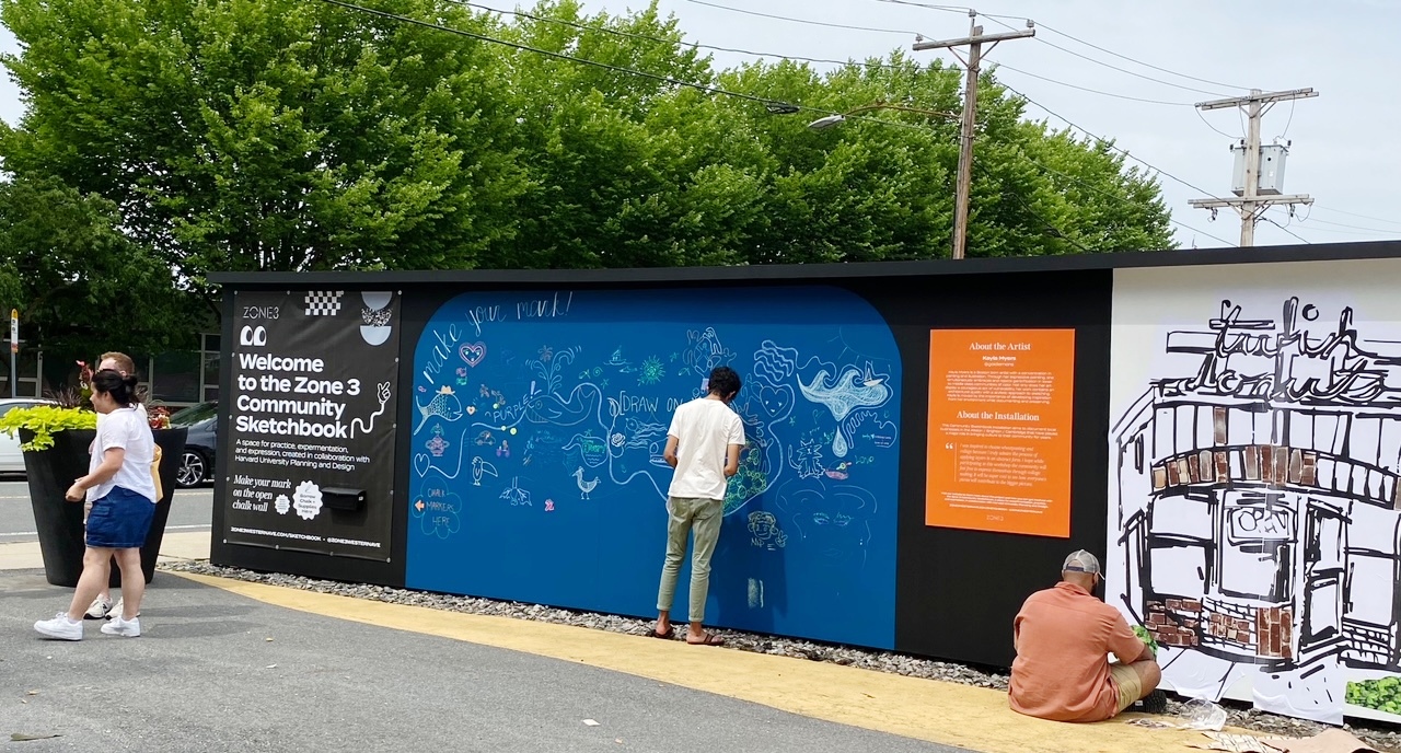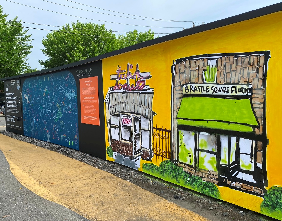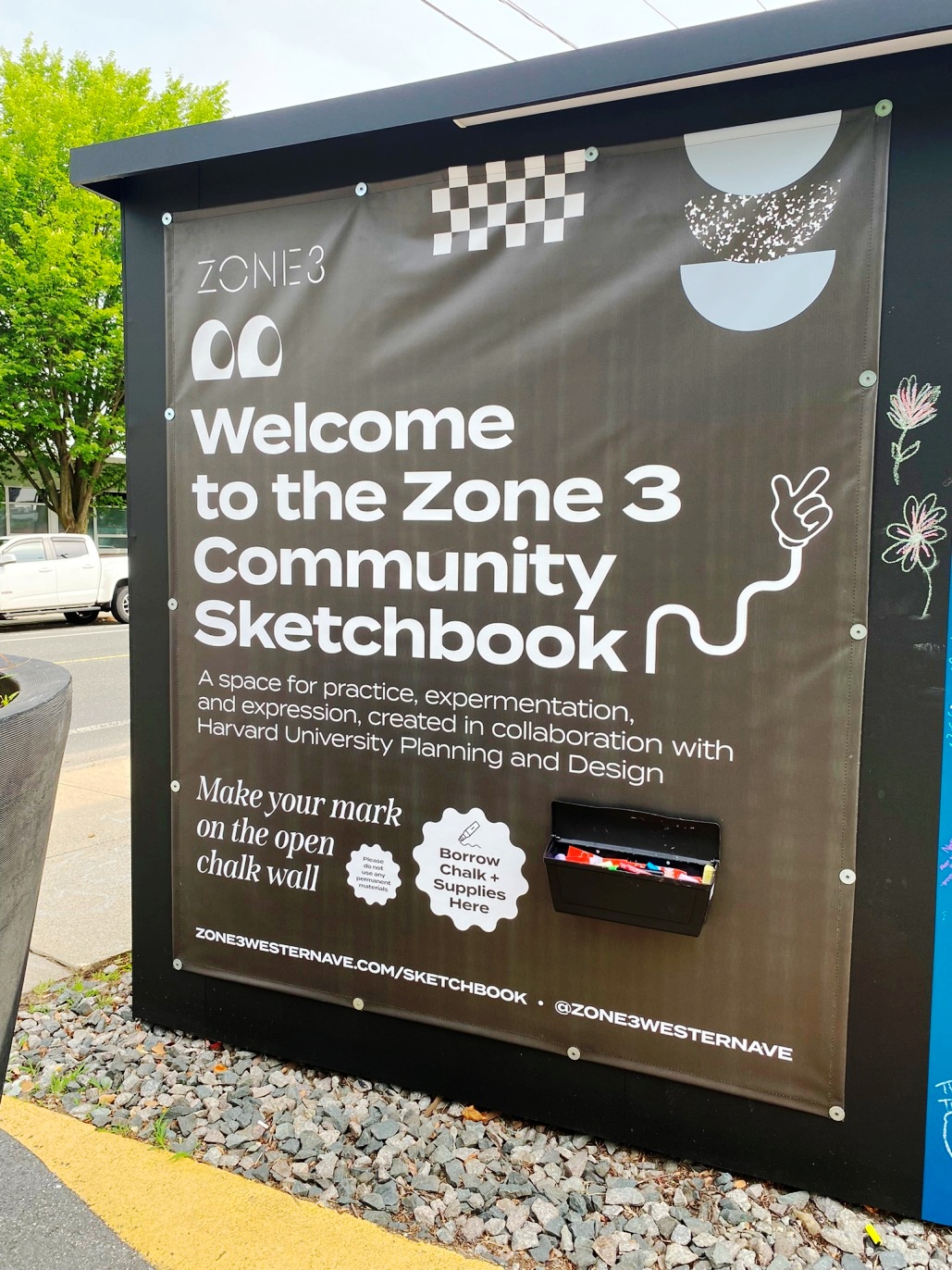 “Since 2015, the Zone 3 initiative has transformed a cluster of formerly under-utilized spaces along Western Ave in Allston into a vibrant hub of creativity and active space for community engagement. These efforts continue through a range of on-going programs, events, retail pop-ups, and impactful public art installations. “ ( quote from Zone 3 overview)