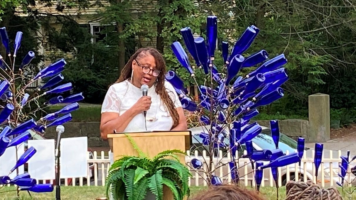 L’Merchie Frazier reading names of now Unforgotten souls of Tory Row: