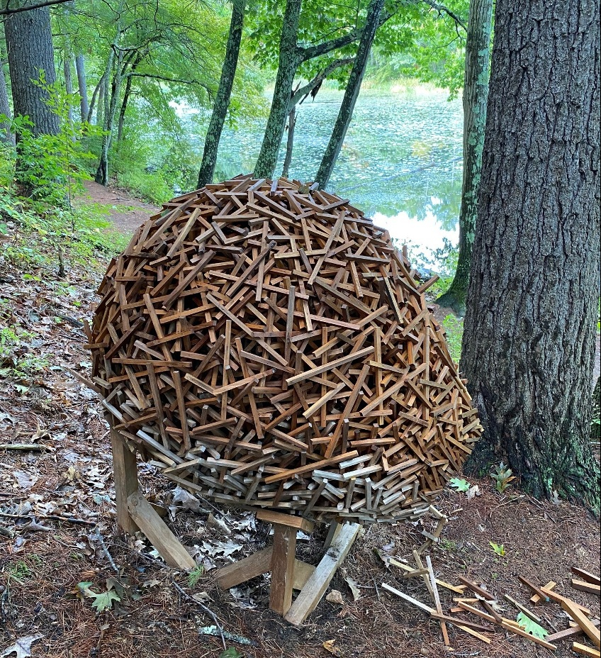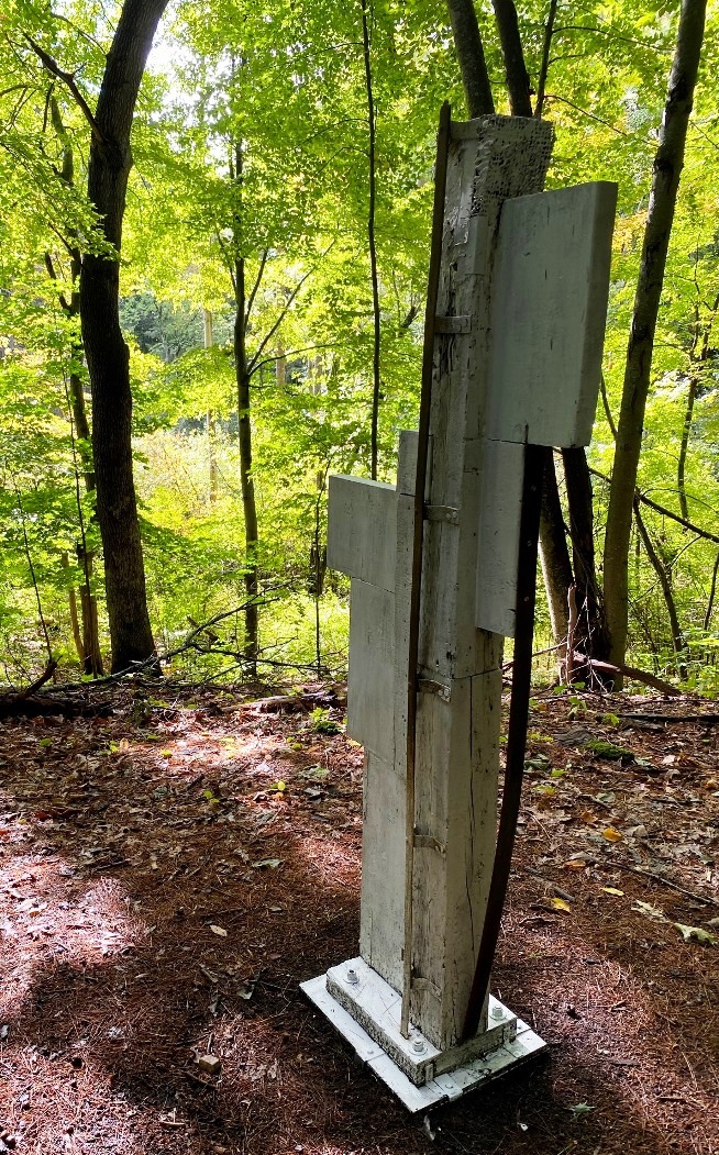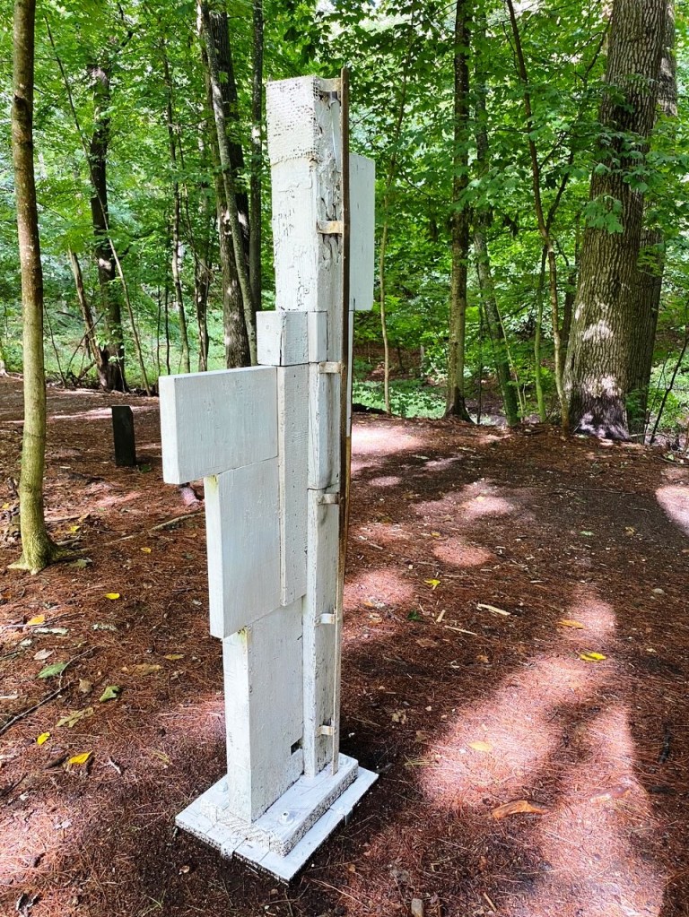 “While the found wooden timbers have been previously milled and processed, the nearby trees that I view as part of the installation remind the viewer of the dependence this piece (and humans in general) has on these beautiful vertical and living resources without which this piece could not exist.” ( from David Ardito’s statement about White Timber II)