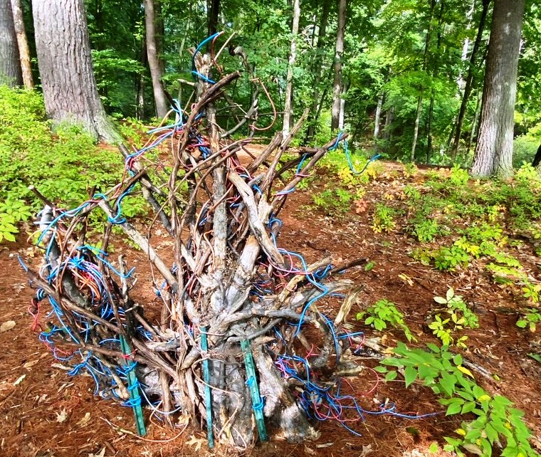 “The viewer might also feel a reference to music, particularly string instruments and musicians, and with that a suggestion of movement and rhythm within the piece. I envision this piece coexisting for a while within a peaceful, natural, woodland setting for viewers to confront quietly, and to connect to in their own personal way.”(from David Ardito’s statement about Metal String Bump )