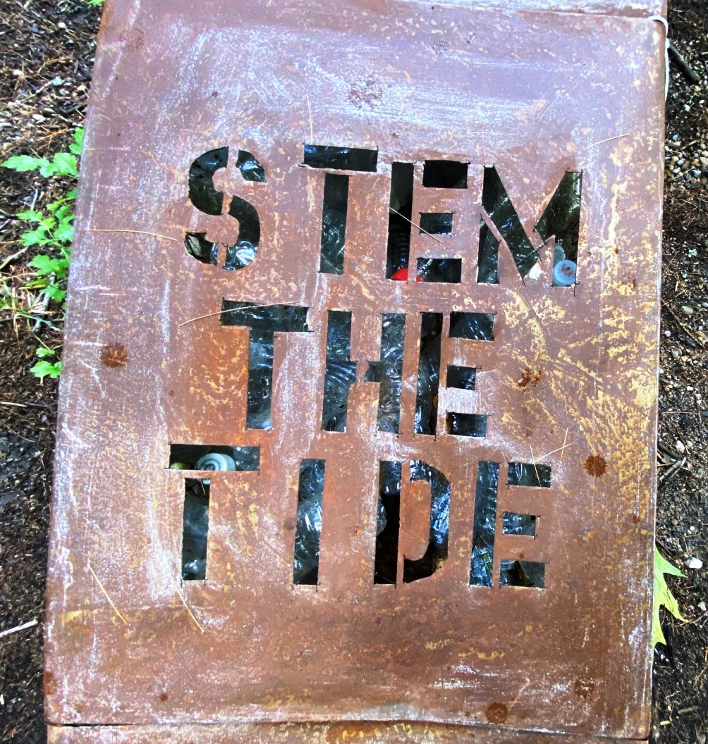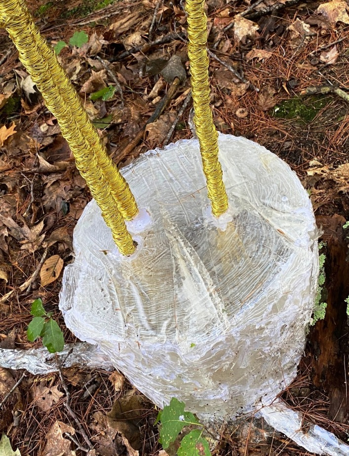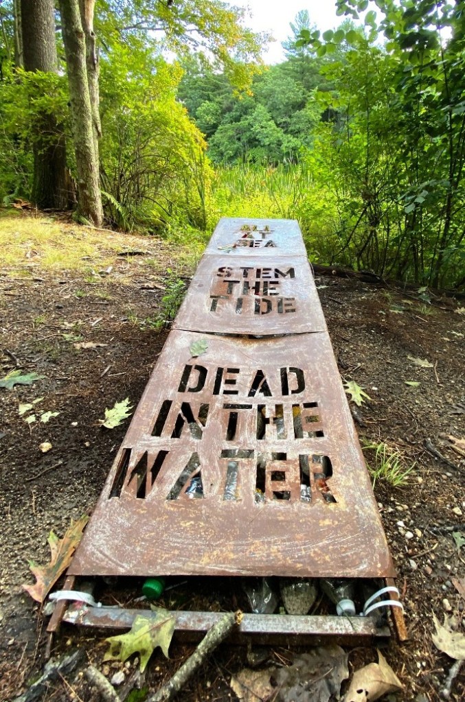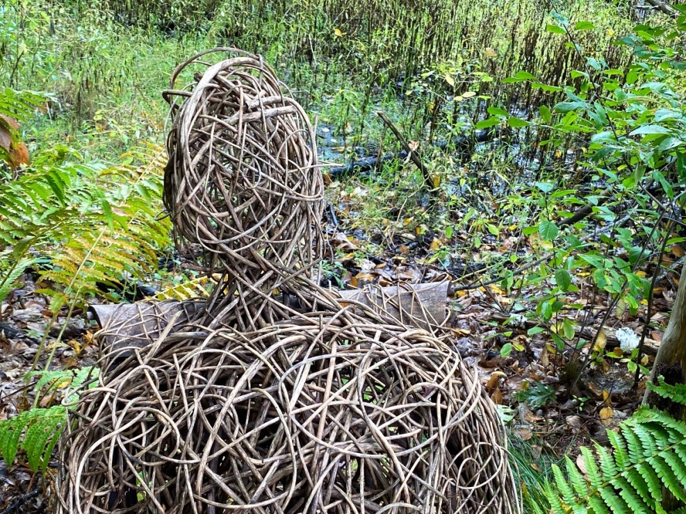 “In the Balance” is an outdoor exhibition of dynamic artworks that express a striving to regain balance with their surroundings, and to bridge the growing chasm between the loss of habitat and life’s persistence. The acceleration of climate change has reached the point of overpowering and upsetting the carefully balanced ecosystems of our surviving forests. The ground beneath our feet is literally slipping away. This artwork responds accordingly. Sound pieces, installation, sculpture, and poetry suggest recombinations, contortions, and orientations toward a new hybrid, symbiotic and sympathetic relationship with nature.” (quote from Curator’s Statement for ART RAMBLE 2022)