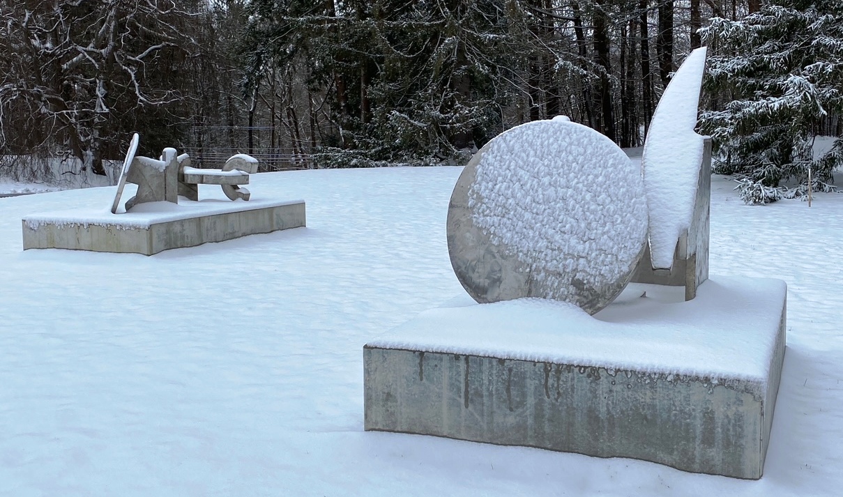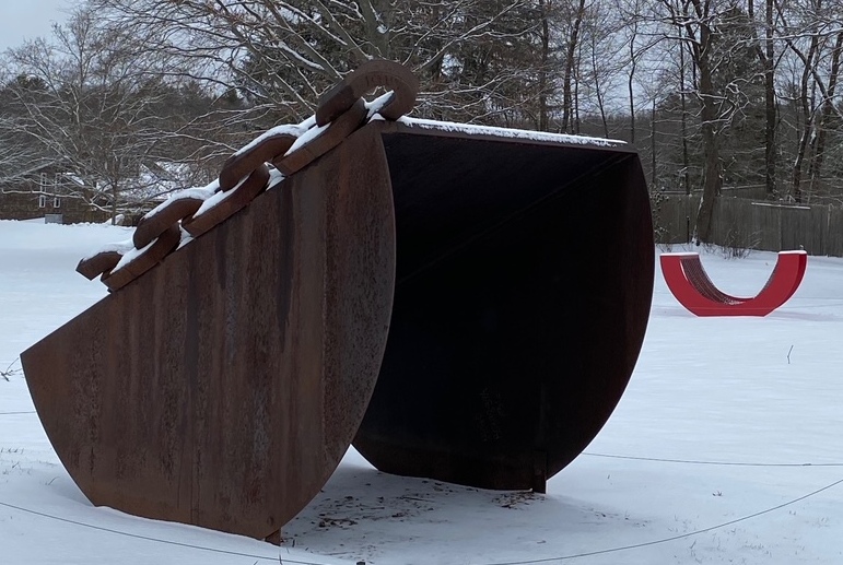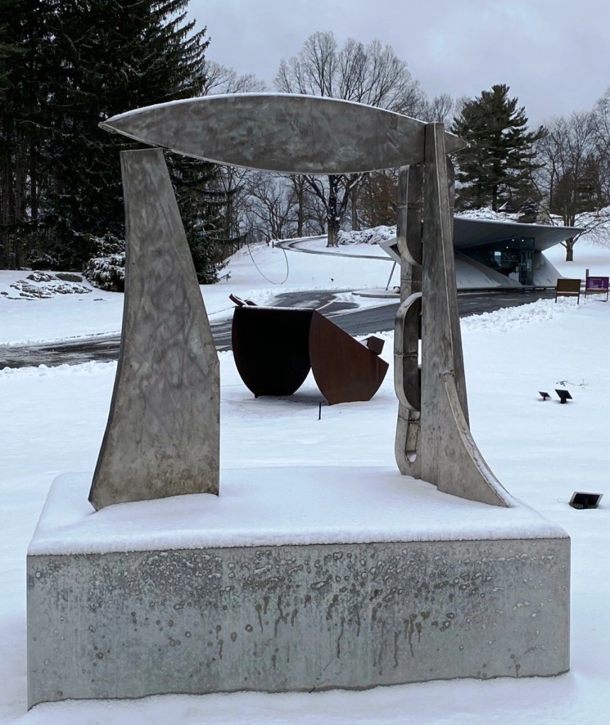 The deCordova Sculpture Park is a great place to take in several selected works by one artist, especially Melvin Edwards! You can get close to all sides of each artwork and recognize connections to related sculptures within your view. Circle them on snowshoes or other ways this winter; stroll among them in the spring. Feeling lucky to live so near, I’ll pass along related links, quotes, and photos now.