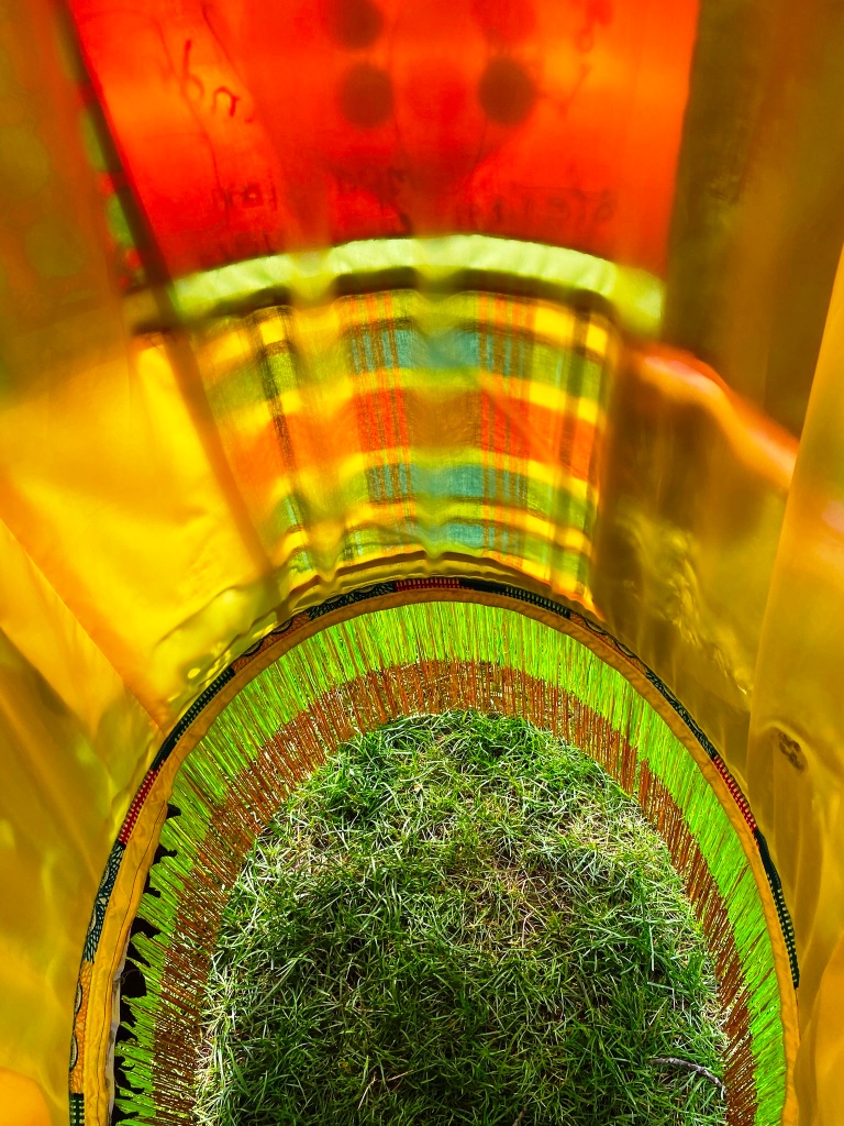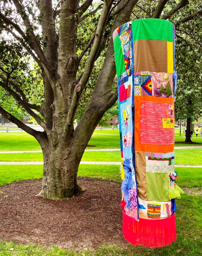“Artist Xinan Ran created three site-specific textile sculptures in collaboration with local communities and the Harvard Museums of Science & Culture. Sixty-six people ages 14–80 contributed through hands-on workshops offered by the HMSC Museum Education Department. ” (quote from HMSC Where We Belong: Tree Chuangs)