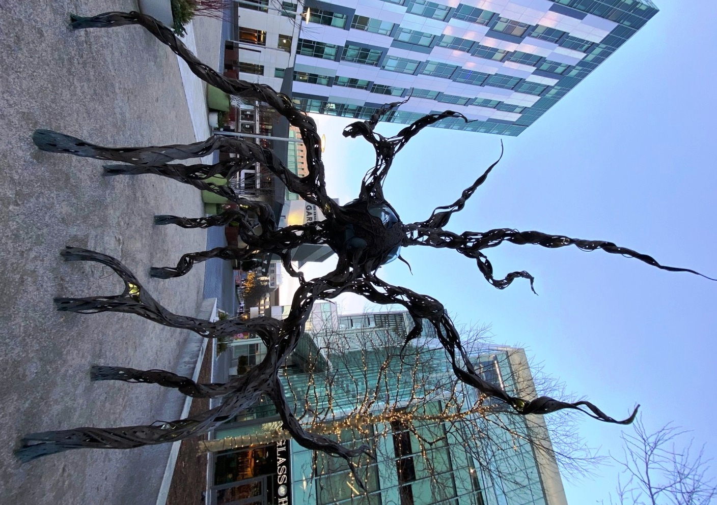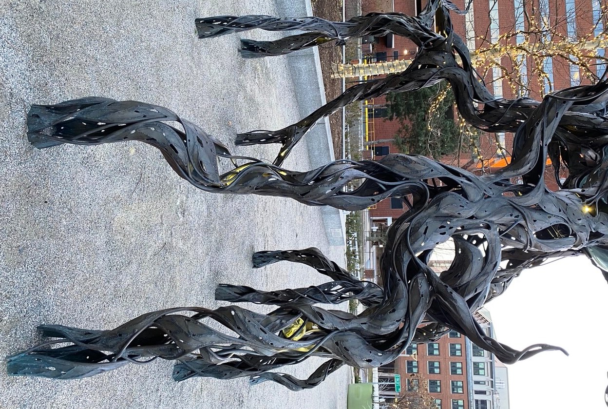 “2015 – Cambridge, Massachusetts is filled with big thinkers. The nerve center of Cambridge, Kendall Square, is the hub of bio tech research. Kendall Square is changing, advancing our understanding of the human body. When it came time to consider a sculpture for Kendall, I wanted it to reflect the big ideas that come from this region of the country.” ( quote from Chris Williams, Public Pieces, Neuron)