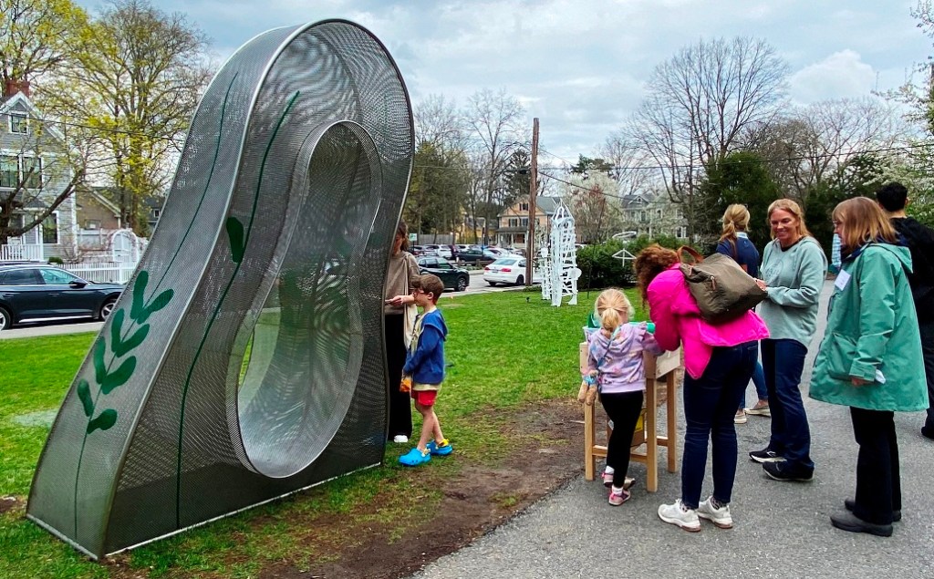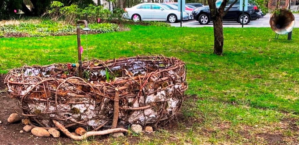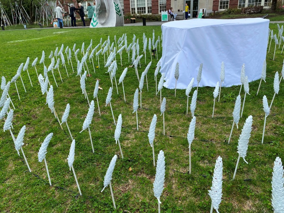 “TAPPED IN” is an innovative art installation at the intersection of art and science that combines outdoor public art with an indoor educational gallery display. Inspired by the concept of ‘edges’ in ecosystems, “TAPPED IN” celebrates the dynamic intersections where diverse influences meet, bringing together ten artist-scientist pairs* to offer fresh perspectives on climate change, CO2 mitigation and action.” ( quote from The Umbrella Arts TAPPED IN)