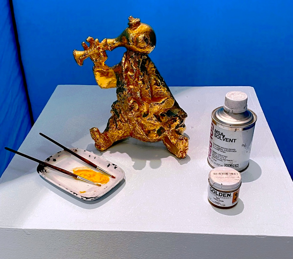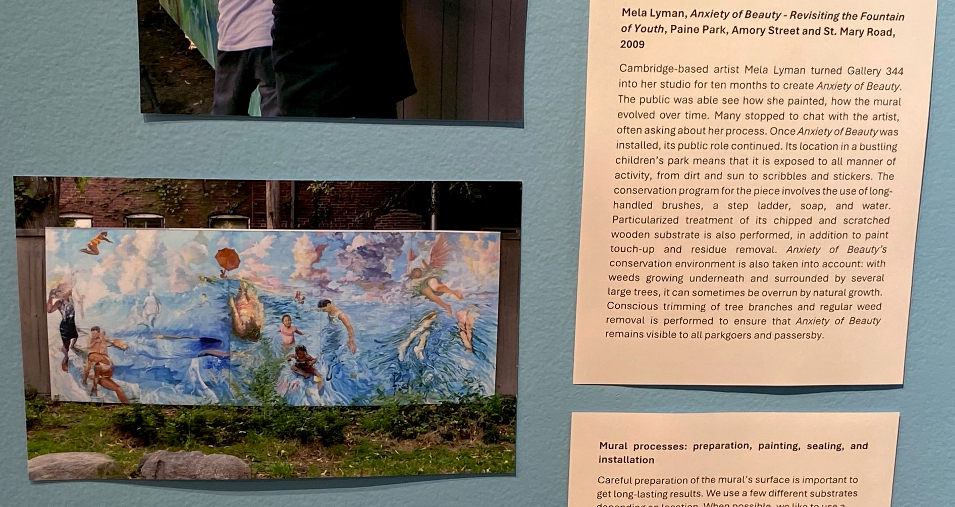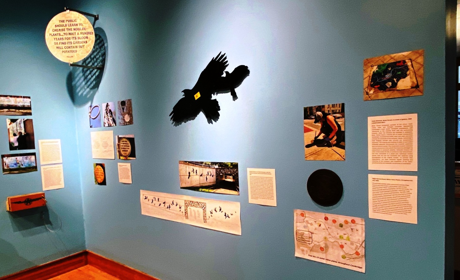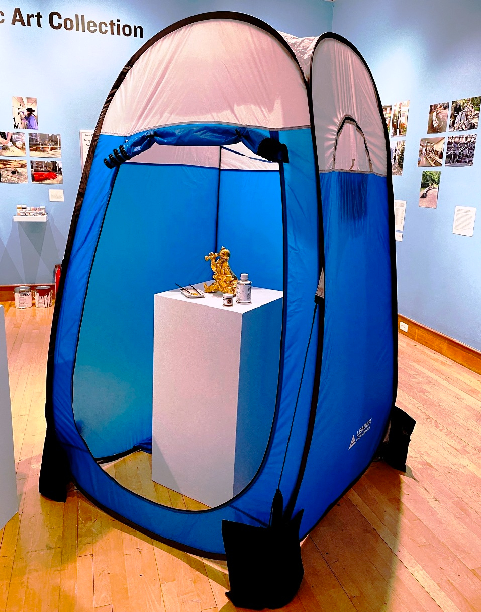 “The exhibition also features tools of the trade—brushes, solvents, wax and patina kits, gold leaf, ladders, syringes, vacuums, pressure washers, graffiti removers, bio-enzymatic urine digester.” ( quote from Cambridge Arts New Exhibition: How We Care For 280+ Public Artworks)