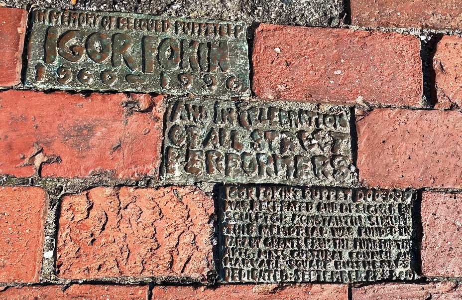 “…Konstantin Simun’s bronze tribute to Igor Fokin’s puppet DooDoo, which was created as a memorial to Fokin at the spot in Harvard Square where Fokin regularly performed before his death in 1996.“( quote from Cambridge Arts New Exhibition: How We Care For 280+ Public Artworks)