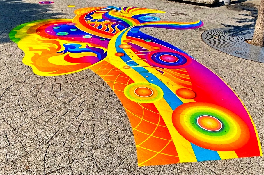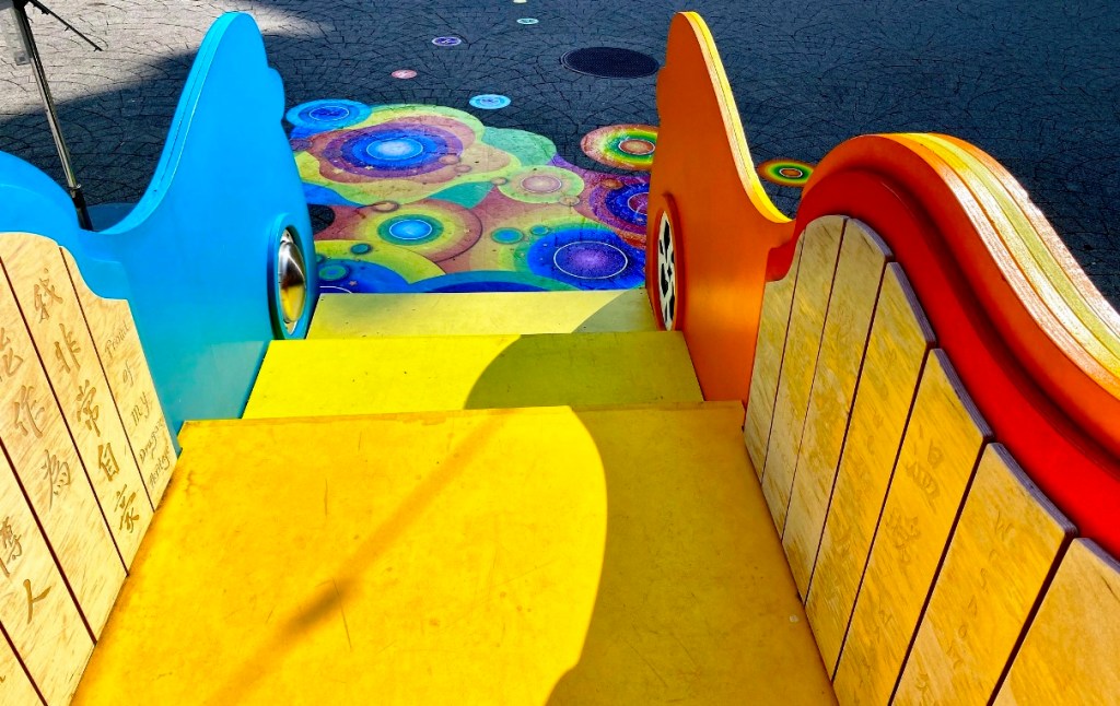 “The project consists of two parts: the dragon’s “head”, an interactive dragon made from plywood engraved with quotes from community members and featuring interactive play elements, and the dragon’s “body”, a vinyl ground mural collaboratively created with A-VOYCE (Asian Voice of Organized Youth for Community Empowerment).“(quote from Year of the Dragon Press Release, 2024 )