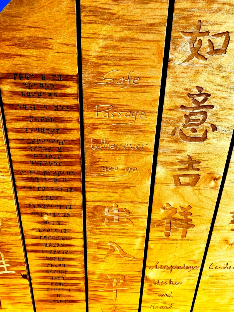 “By sharing personal stories, drawings, and ideas, community members envisioned this unique dragon and the superpowers they hope the dragon brings to Boston Chinatown in the year 2024. These handwritten blessings are etched onto the inside panels of the sculpture in both English and Chinese calligraphy. “(quote from Year of the Dragon Press Release, 2024 )