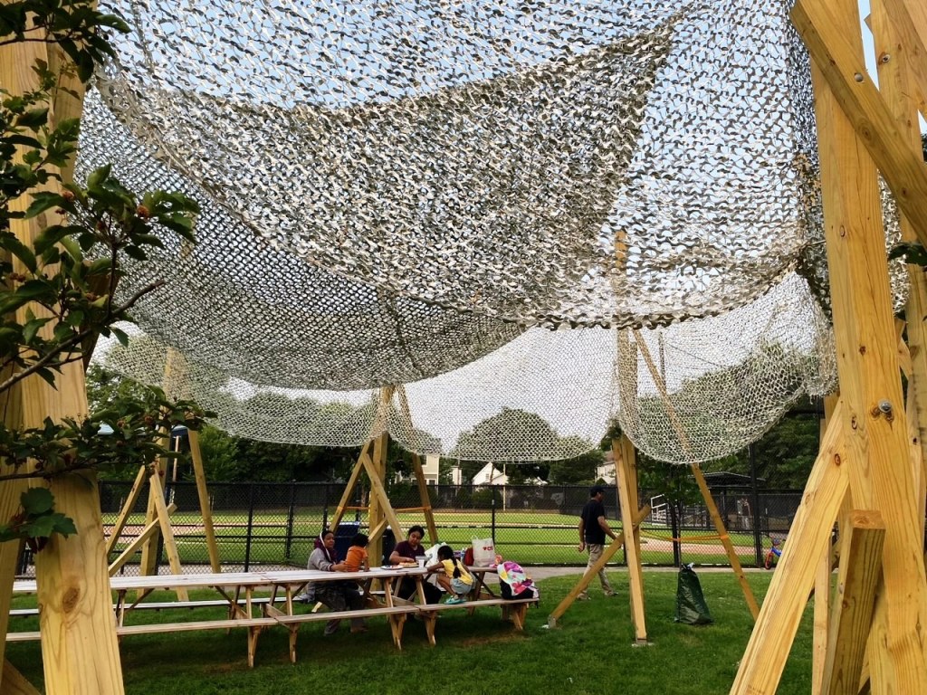 *“Sun Block,” designed by Gabriel Cira and Matthew Okazaki, Jill Brown-Rhone Park in Central Square. (Hoping to visit this third shade structure to include in a sequel post.)