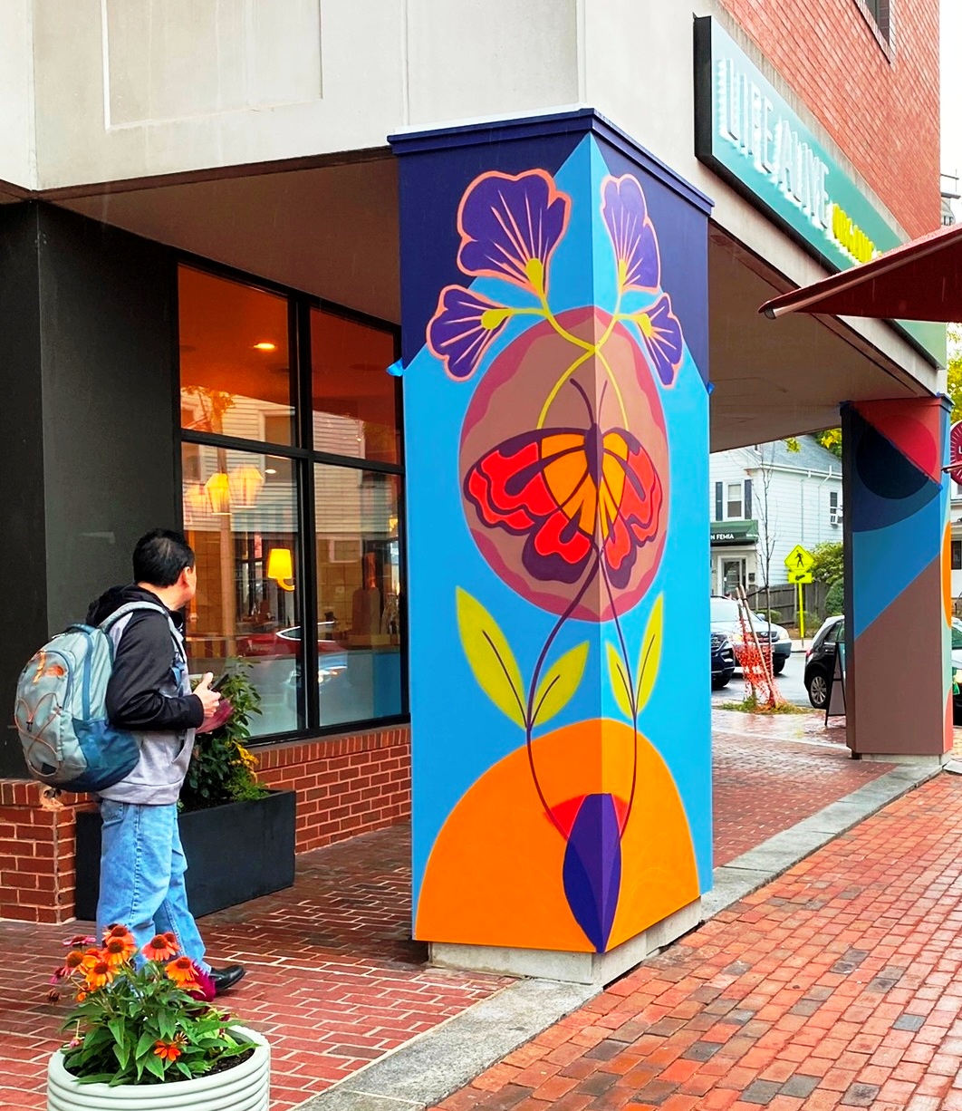 “Artist Lena McCarthy transformed the side of Helena’s at 397 Massachusetts Avenue into a beautiful portal.” ( quote from Arlington Mural Project, Arts Arlington for Transformation Portal, October 2024)