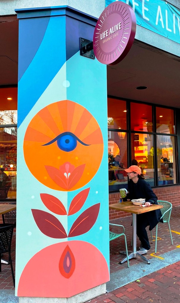 “It was so fun to design for this project in part because @lifealivecafe people were so cool in letting me take the lead on the concept and also because their values and aesthetic felt aligned with my own.. Vegetarians unite!”( quote from Lena Mac Instagram quote Dec 2022)