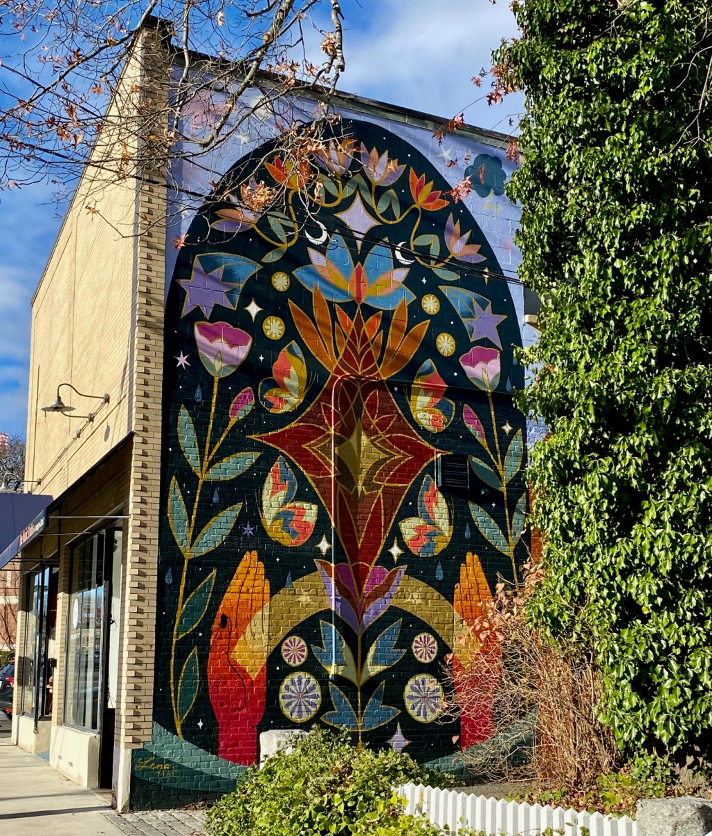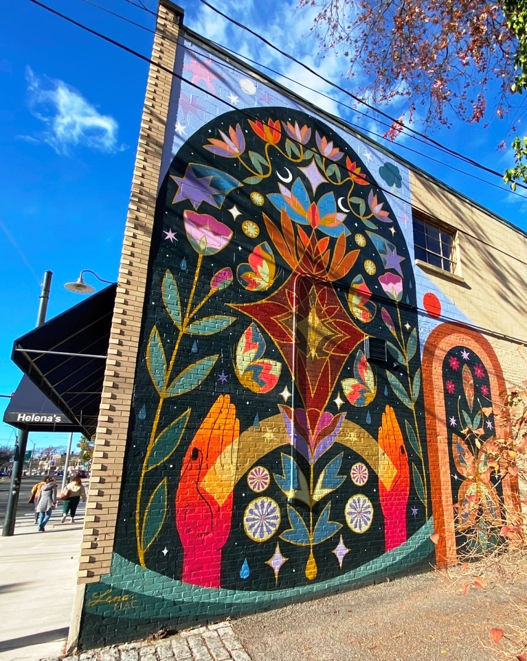 My first visit to Lena Mac’s new mural led me to look back at an earlier one and then discover many more. This post shares photos of two near me and a link to her website, which shows her range worldwide!