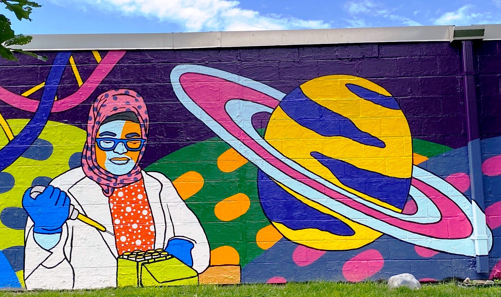 “Portraits of scientists at work and a father and daughter using a telescope show how science can expand our minds in settings both formal and informal.” (quote from Learning in the Park mural by Anna Dugan, Zone 3 )