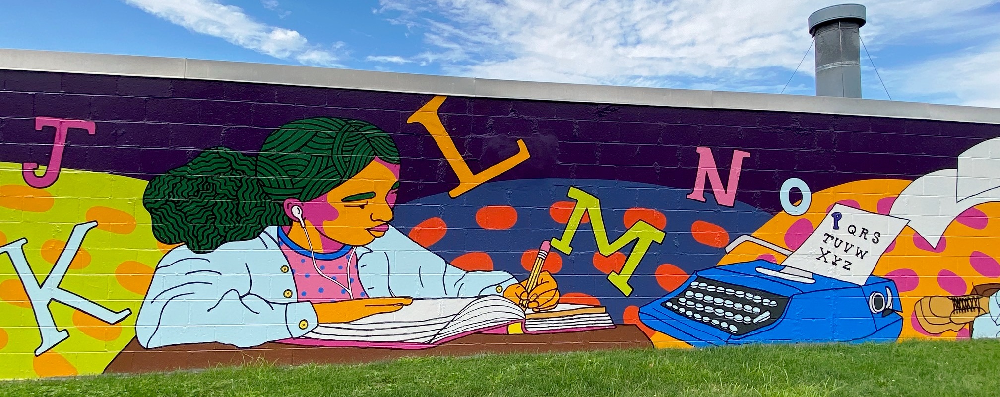 Learning in the Park mural by Anna Dugan, Zone 3: https://www.zone3westernave.com/project/learninginthepark/This link includes photos of the artist working on mural, video of mural celebration, interview with artist Anna Dugan.