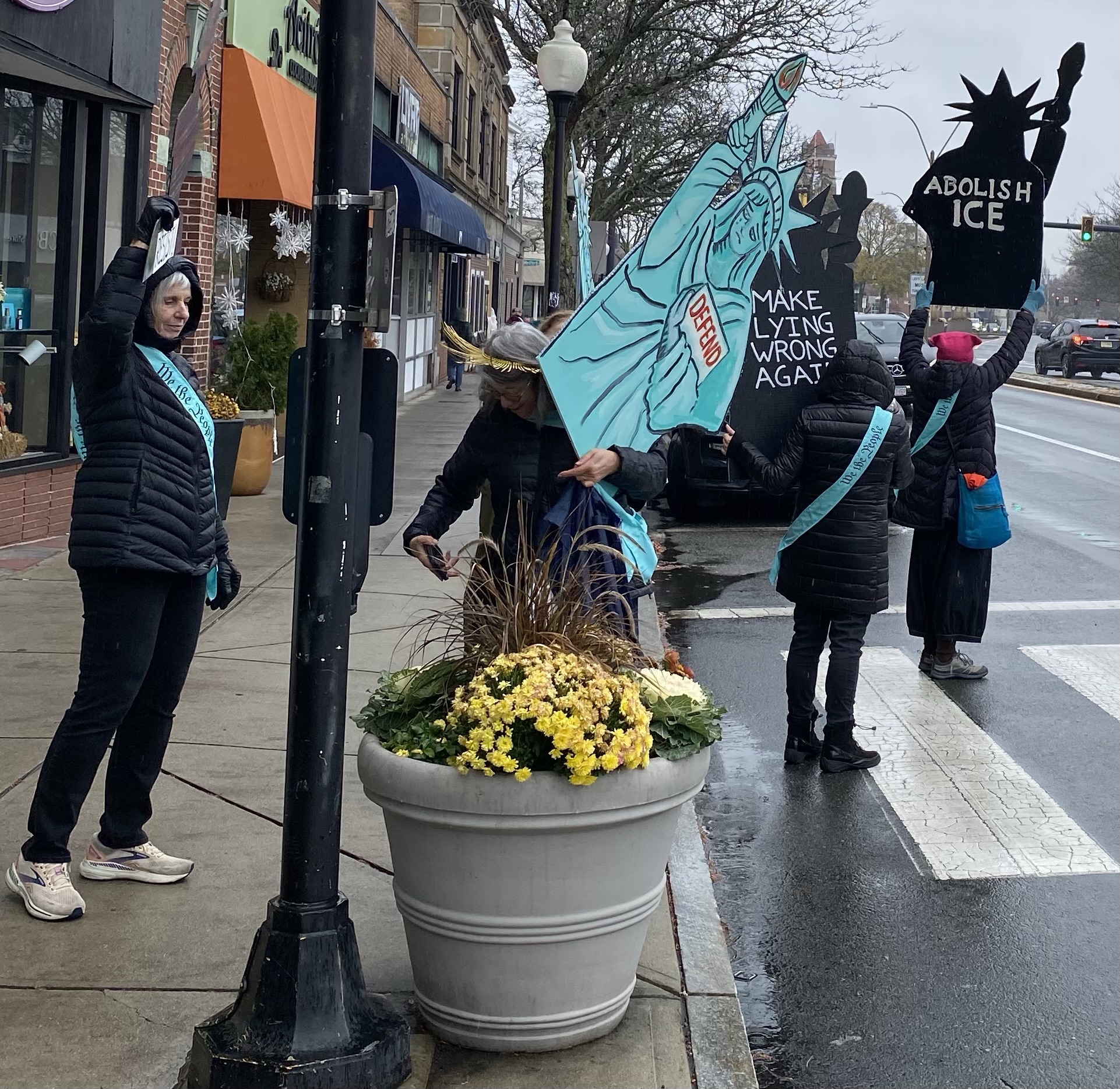 “Arlington artist Adria Arch and an intrepid group of artist friends created large painted Statue of Liberty signs and slogans for the … No Kings rally on the Boston Common. Now they are bringing them to Arlington Center as part of a national action called Fall of Freedom (https://www.falloffreedom.com/).” ( quote from Cecily Miller’s email message about this event)