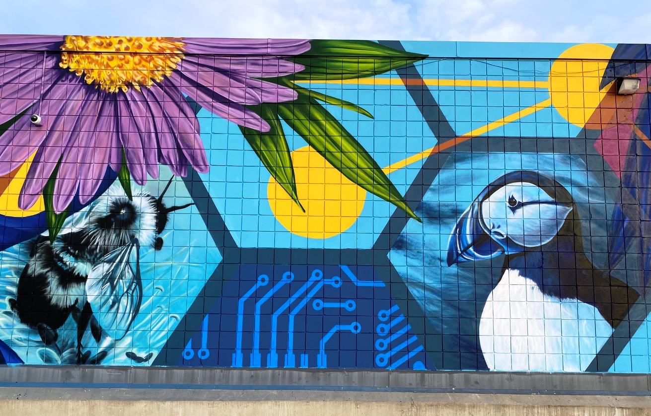 Two Works of Public Art Combine Forces on One Block in Arlington: Utility Box by Eileen de Rosas and Mural by Sophy Tuttle