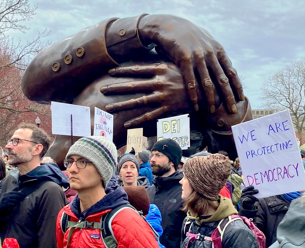 Hands–on Signs Energize “Hands Off!” Rally in Boston, April 5