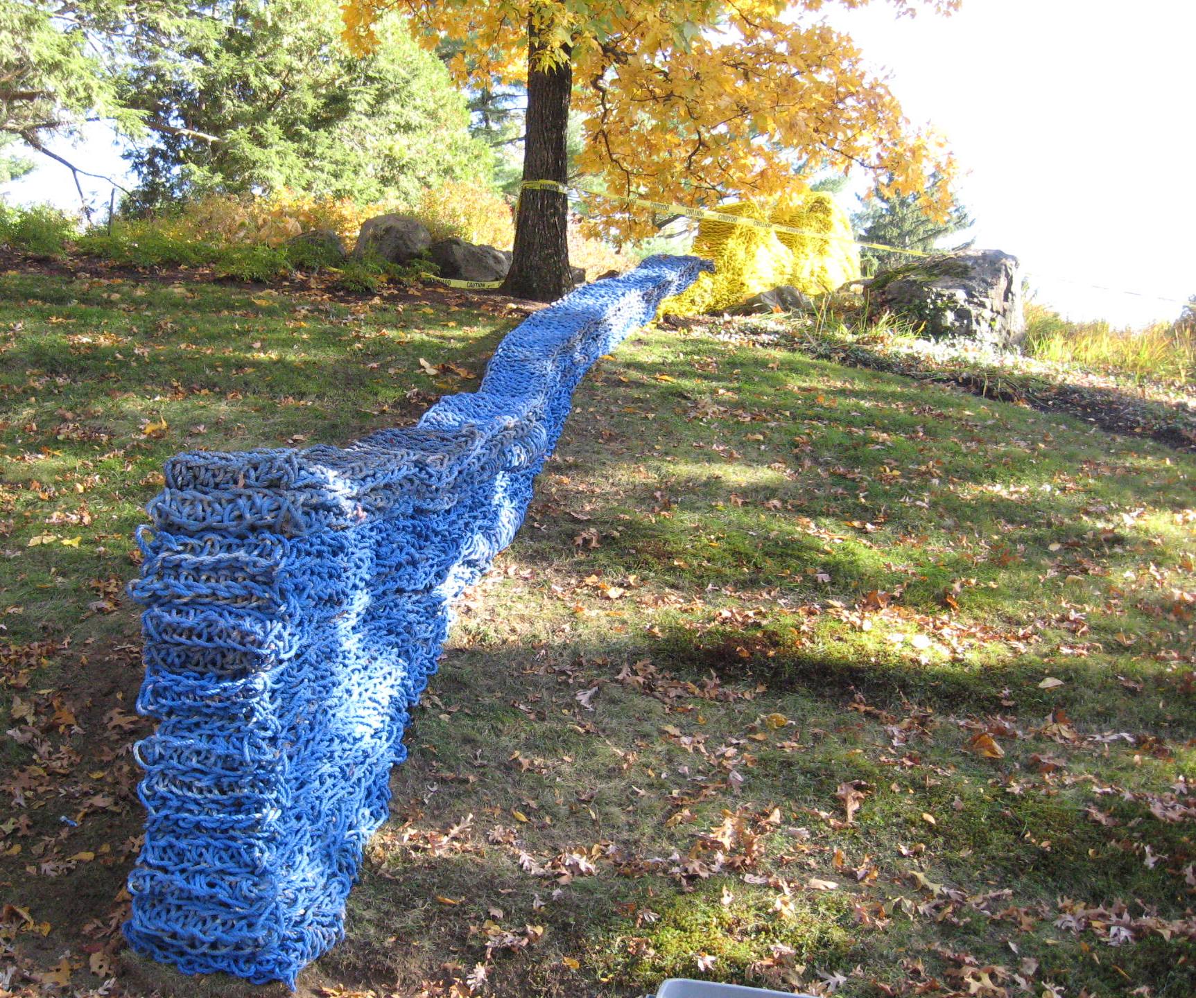 - Yellow and red sections in progress, during installation of Red, Yellow and Blue by Orly Genger at deCordova Sculpture Park