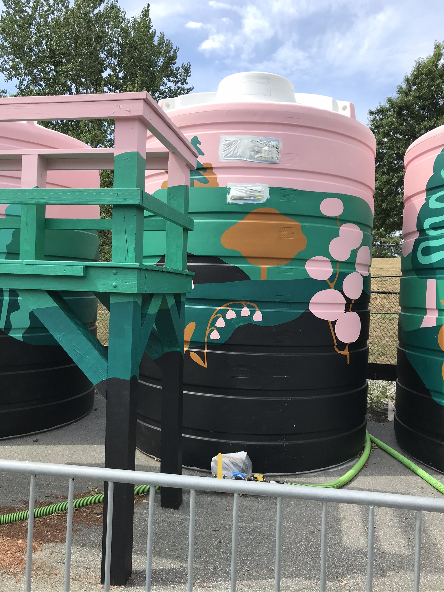 - Yellow and red sections in progress, during installation of Red, Yellow and Blue by Orly Genger at deCordova Sculpture Park