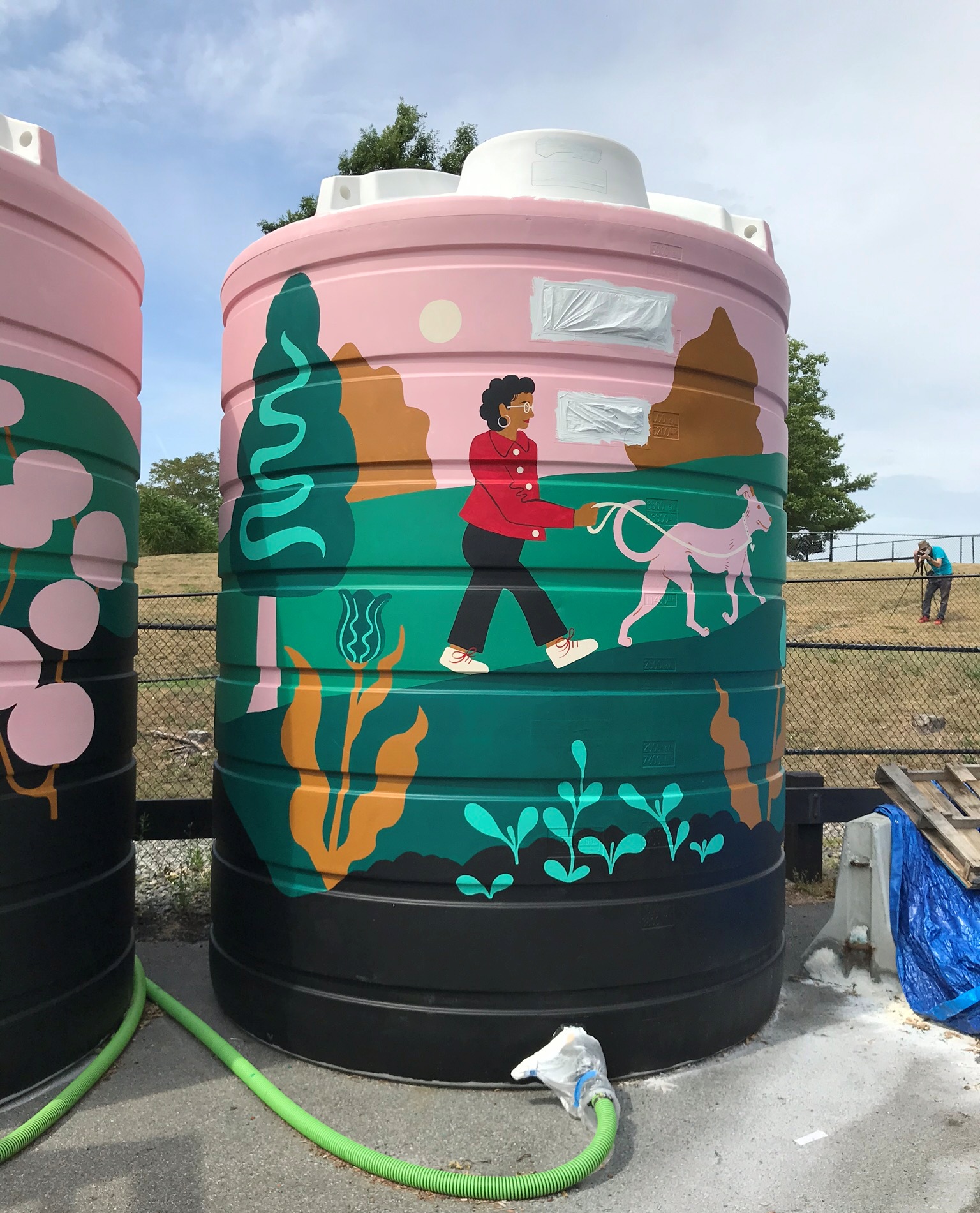 - Yellow and red sections in progress, during installation of Red, Yellow and Blue by Orly Genger at deCordova Sculpture Park