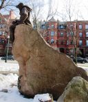 - Originally sited to overlook the Charles River, Eriksson stands atop a boulder and shields his eyes as if surveying unfamiliar terrain.