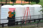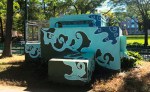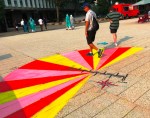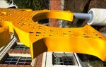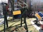 - Yellow and red sections in progress, during installation of Red, Yellow and Blue by Orly Genger at deCordova Sculpture Park